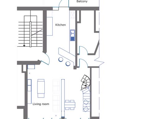 Tenemos un apartamento en el último piso de un edificio de 6 pisos. El apartamento se distribuye en 2 plantas, nos gustaría modificar y redecorar la sala de estar en el primer piso, tenemos ideas un poco confusas, nos gustaría un proyecto que combine la sala de estar y la cocina, ver una propuesta que elimina la chimenea y rediseña la escalera. que conduce al piso superior. Recientemente hemos renovado los pisos en el primer piso y todo es de parquet y se mantendrá. Nos gustaría un mobiliario más moderno que el que tenemos pero no extremo.