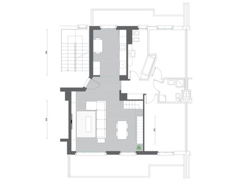 We have an apartment on the top floor of a 6-story building. The apartment is spread over 2 floors, we would like to modify and redecorate the living area on the first floor, we have a little confused ideas, we would like a project that combines the living area and the kitchen, see a proposal that eliminates the fireplace and redesigns the staircase leading to the upper floor. We have recently redone the floors on the first floor and it is all parquet and will be maintained. We would like a more modern furniture than we have but not extreme.