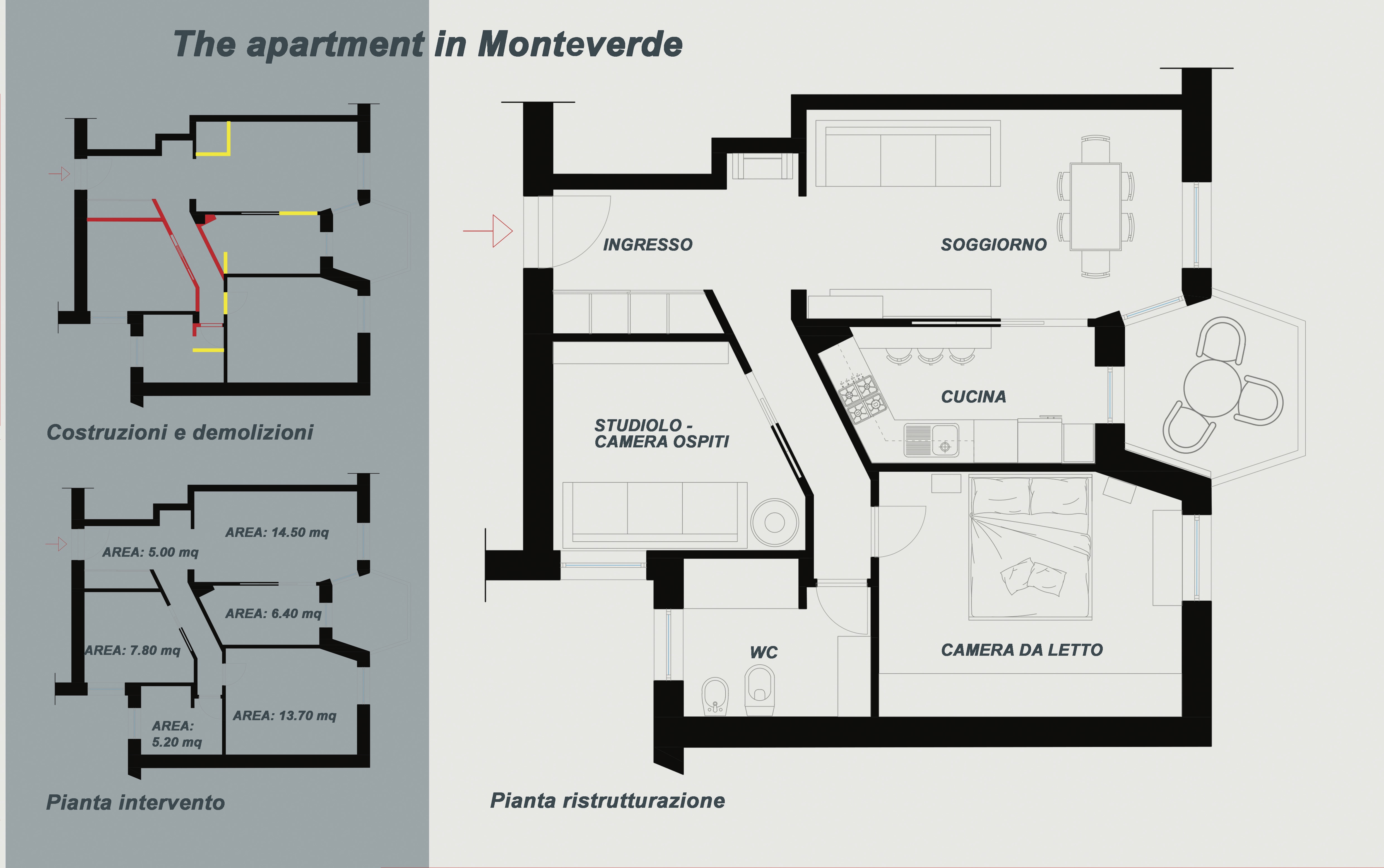 - Probabile che serva spostare il soggiorno in altra parte della casa (per esempio al posto dello studio?) per dargli una migliore collocazione