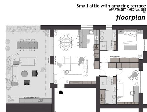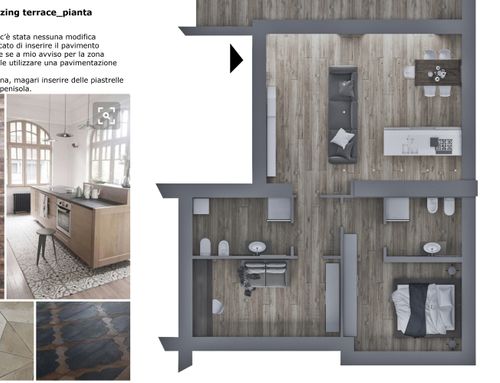 Siamo una giovane coppia che ha acquistato un appartamento di circa 85 mq all'ultimo piano con un terrazzo di circa 45 mq. L'appartamento è un recupero sotto tetto con un'altezza di 240 cm per tutto l'appartamento (tetto falda piana - no travi a vista).
