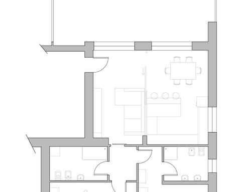 L'appartamento verrà consegnato finito e la scelta dei pavimenti e dei rivestimenti dei bagni è già stata effettuata. La posizione dei sanitari è determinata così come le pareti divisorie. La posizione dell'angolo cottura e dei relativi attacchi è definita (ammessi piccoli spostamenti lungo la parete attrezzata). L'impianto di riscaldamento è del tipo pavimento radiante.