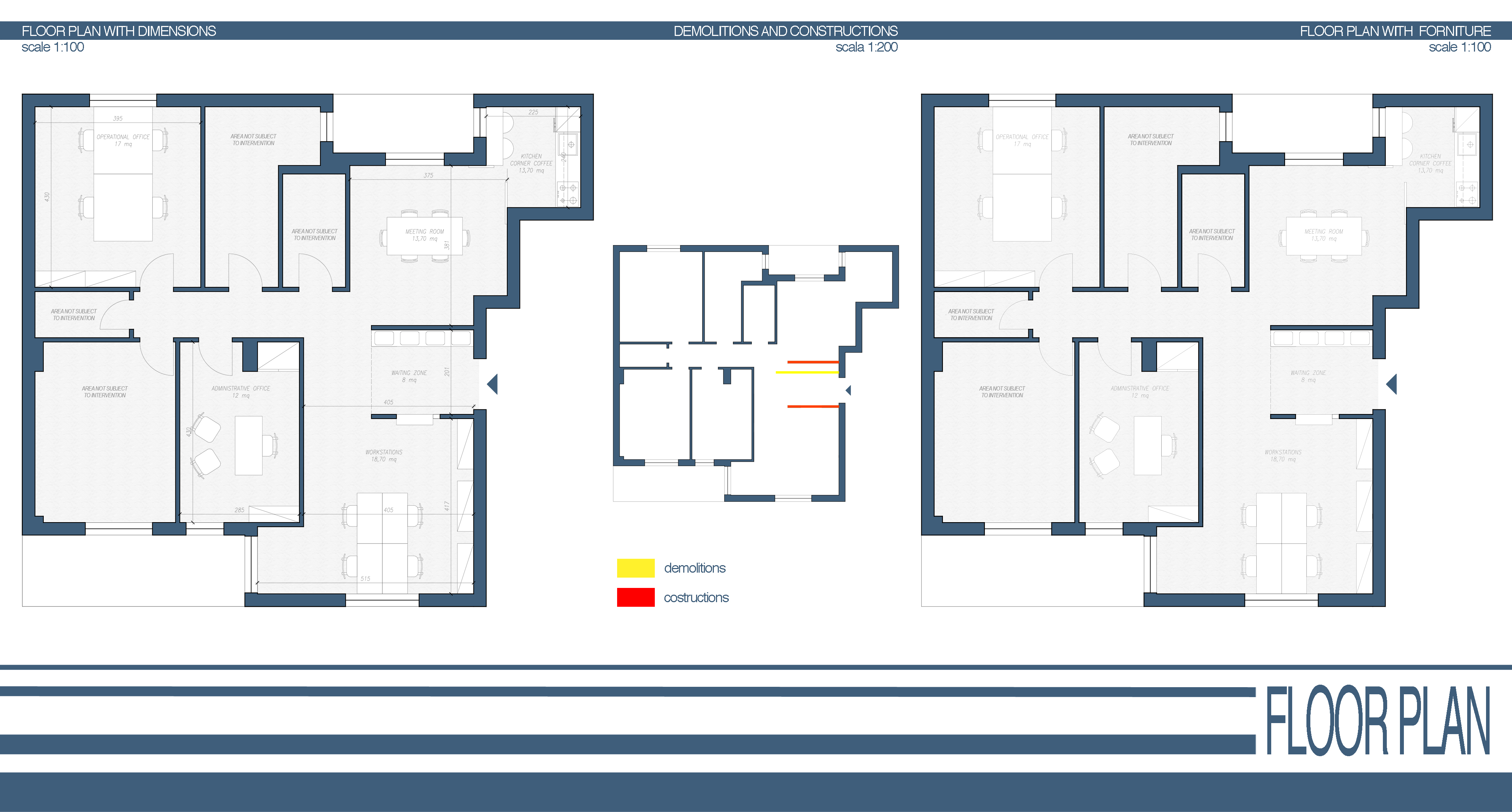Si chiede dividere l’area operativa dall'ingresso attraverso un divisorio, per esempio libreria (NESSUNA MURATURA) con la possibilità di far sostare 2/3 persone.