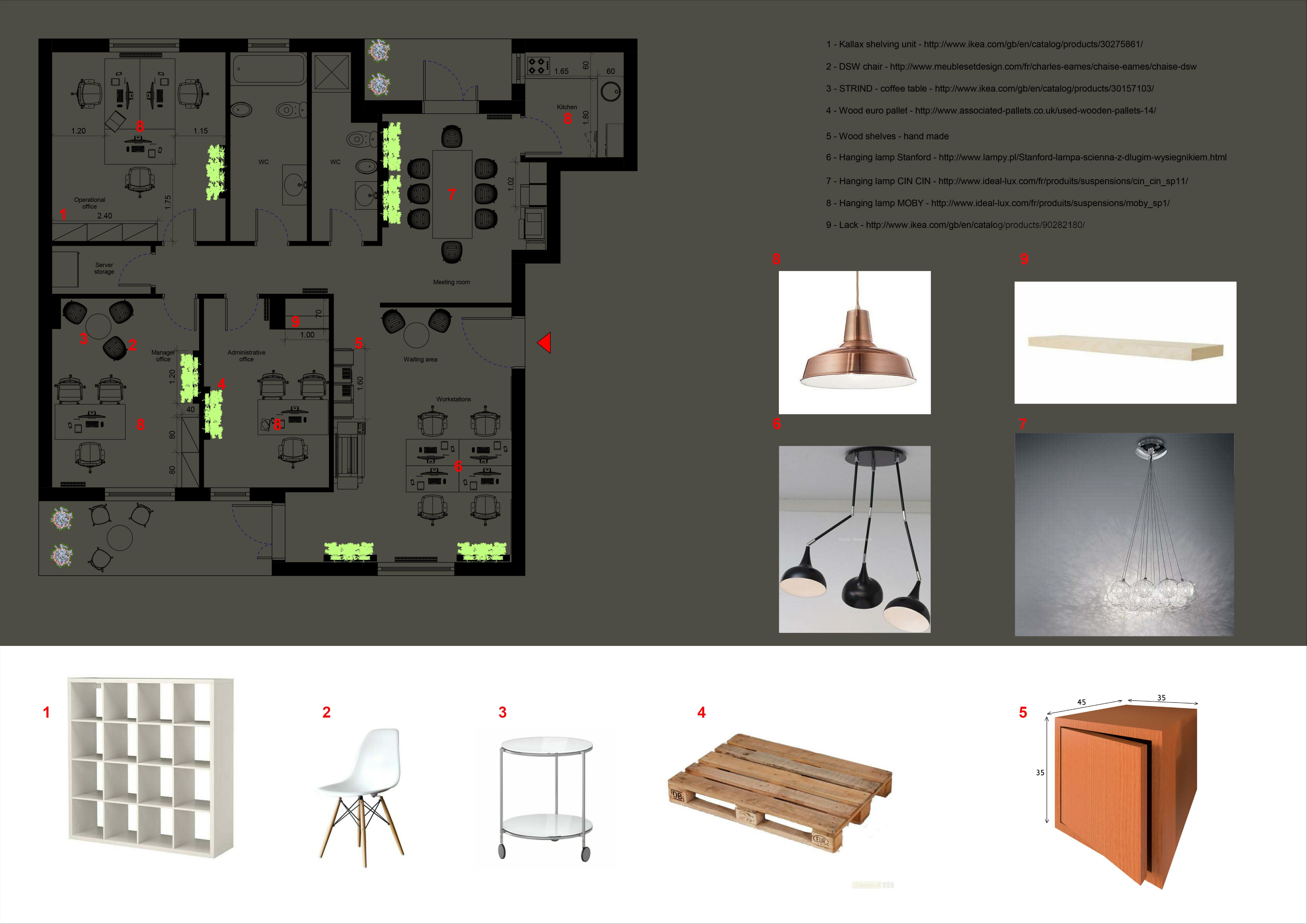 schema arredamento almeno 1 Informazioni dei mobili principali usati nel progetto (marca, prezzo, sito web, ecc.) riportati nella pianta dettagliata.