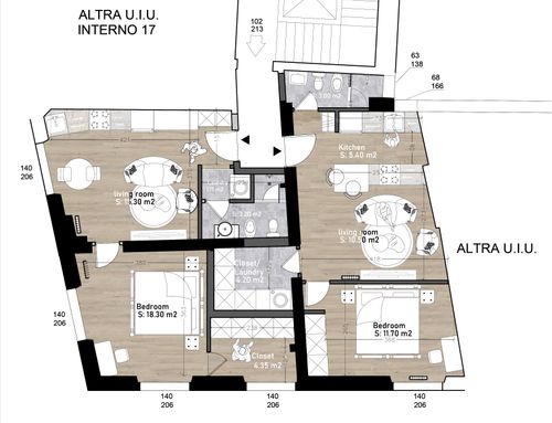 - Una piccola dispensa/rispostiglio/lavanderia per ognuno dei due appartamenti