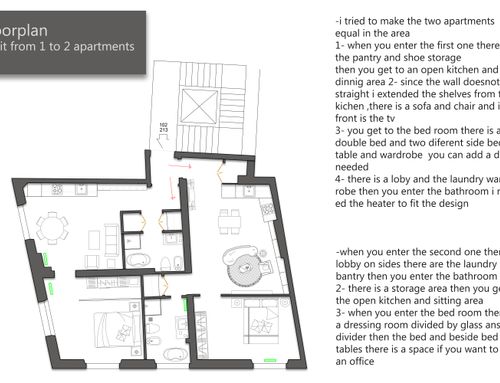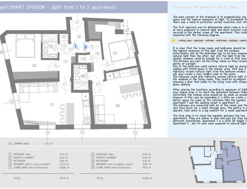 We need a project to divide this apartment into two independent apartments, which will be put on the market.