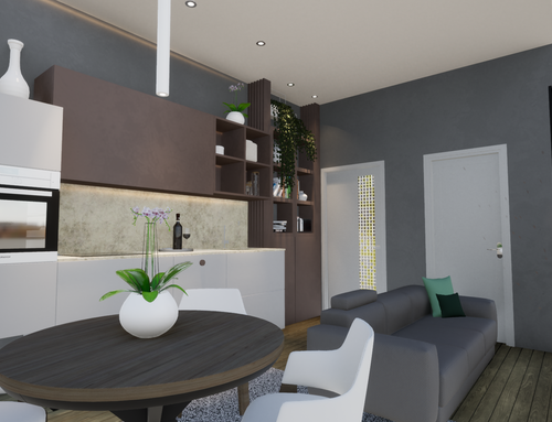 - Soggiorno con angolo cottura, con cucina che possibilmente deve essere lineare e avere una larghezza di almeno 300cm.