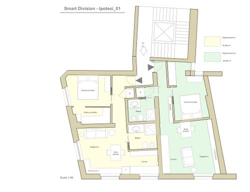 Abbiamo bisogno di un progetto per dividere questo appartamento in due appartamenti indipendenti, che saranno messi sul mercato.