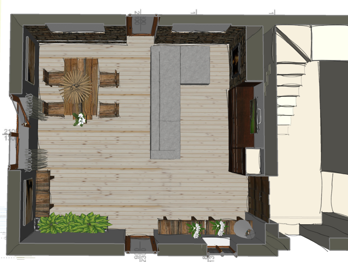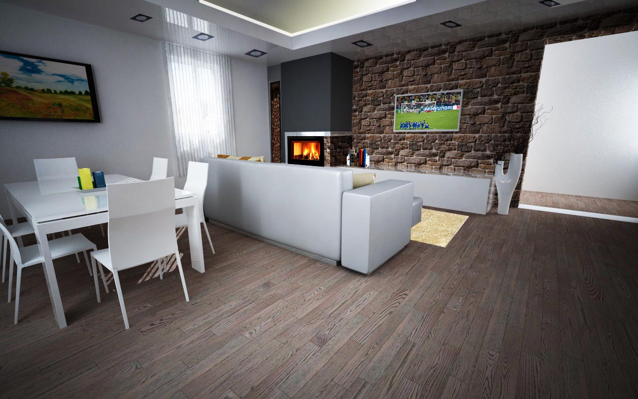 Lo stile deve essere moderno ma con qualche richiamo al rustico essendo l'immobile un "casale". Per rustico intendo rivestimento camino in pietra piuttosto che legno. Considerate che vorremmo verniciare di un grigio solo la parete camino/TV mentre tutto il resto lasciarlo bianco. Comunque a voi la scelta...