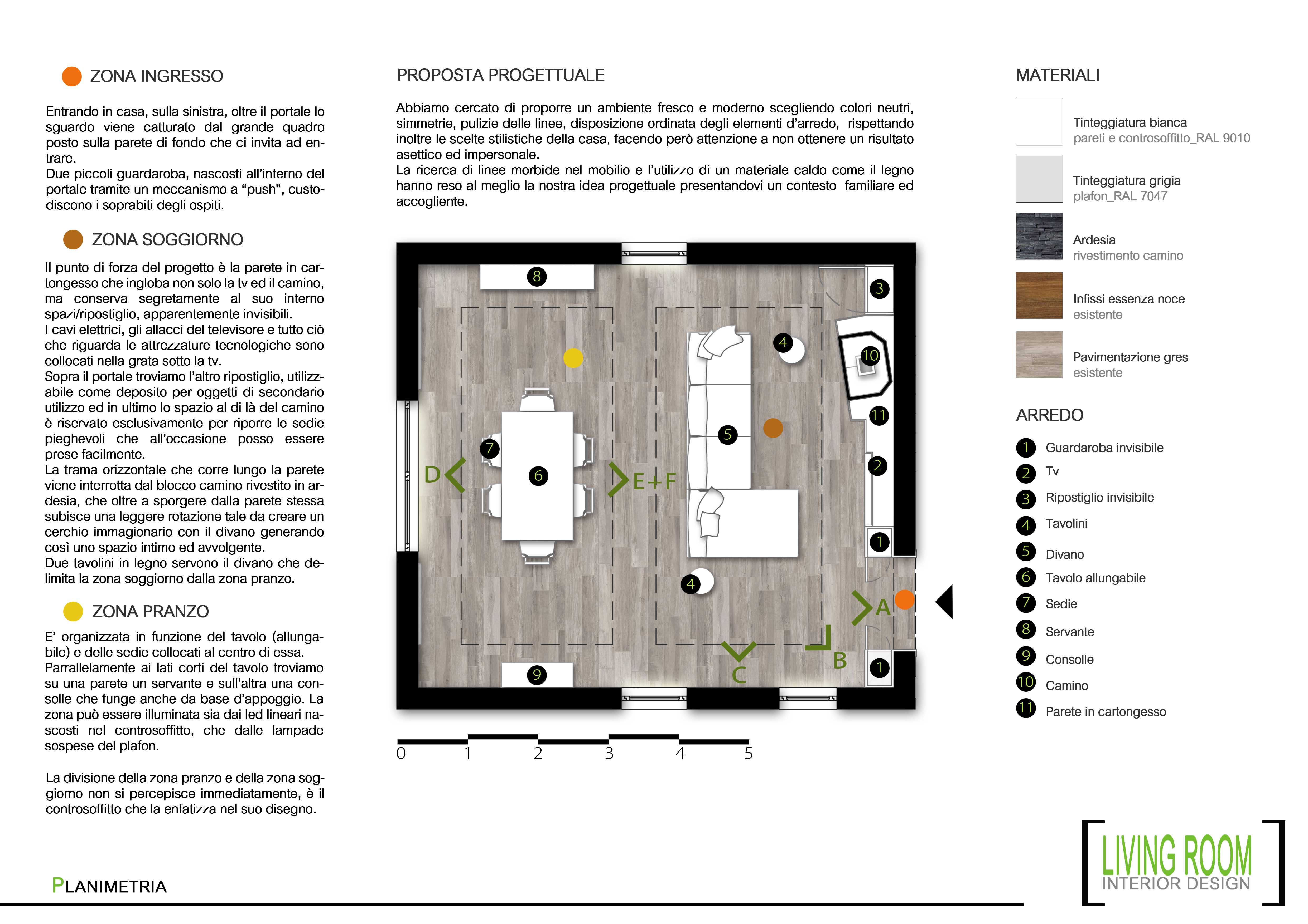 Per le prese luci abbiamo predisposto 3 punti luce centro tavolo (che necessitiamo allungabile) nella parte della stanza opposta al suo ingresso, per avere quindi un'area separata TV e vista camino. Come fonte di illuminazione invece appena si entra in salotto abbiamo pensato ad una controsoffittatura che corra da muro a muro sopra l'ingresso della sala e possa abbracciare il camino dove inserire dei faretti. (da decidere tutto.. manca inspirazione per controsoffitto su cui abbiamo molte aspettative).