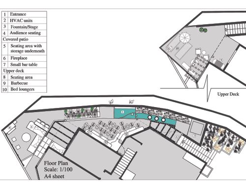 We would like to use the existing planter area as a shallow pool for a wall fountain (waterfall, trickle). Additionally, we would like to be able to easily convert the converted pool area to a music stage (e.g. drain, then cover the open area with a foldable platform). The exterior dimensions of the planter is 51” deep by 114” long by 24” tall (4.25’ x 9.5’ x 2’). We would prefer a cost-effective aesthetic treatment, as the fountain has the potential to be quite large. We are open to a smaller fountain, however.