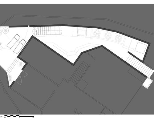 This is an important area of this outdoor area. We would like to have a comfortable outdoor living space that can be used year round, with a Mediterranean design influence. The orientation of the sitting area would be facing towards the house and canyon (away from the retaining wall). The core living space would be approximately 8x11 feet, with additional irregular space surrounding this area. The shade and canyon breeze keep the area cool even during periods of high temperatures.