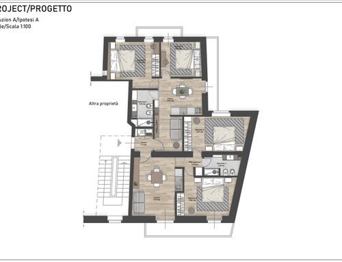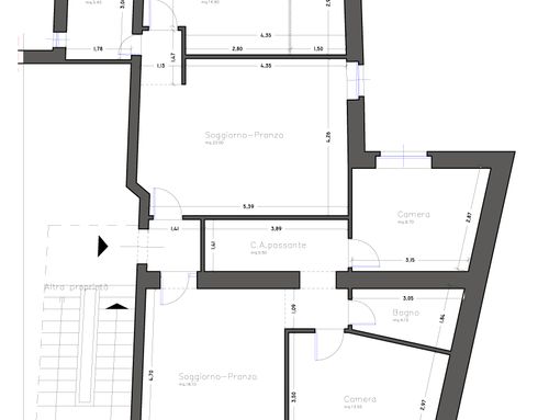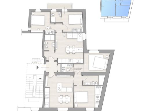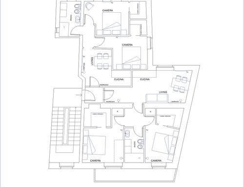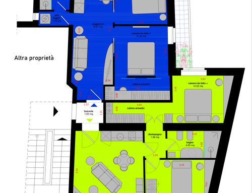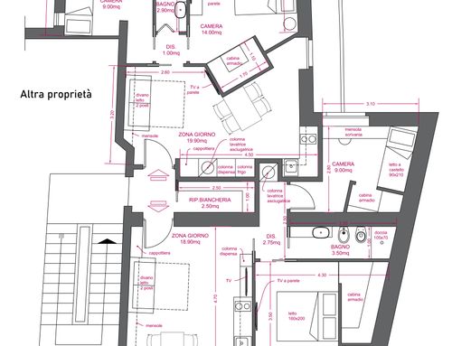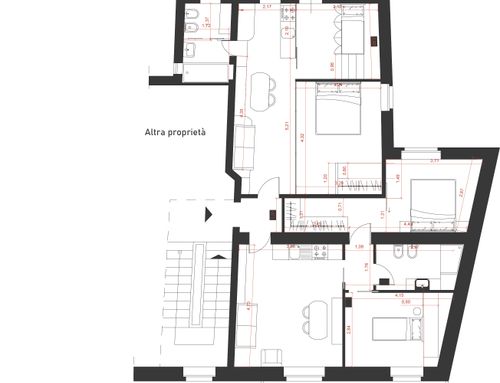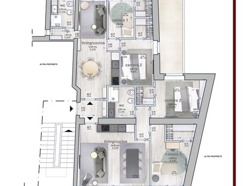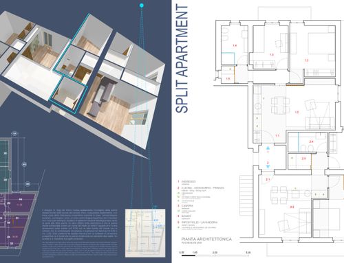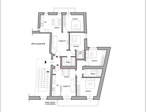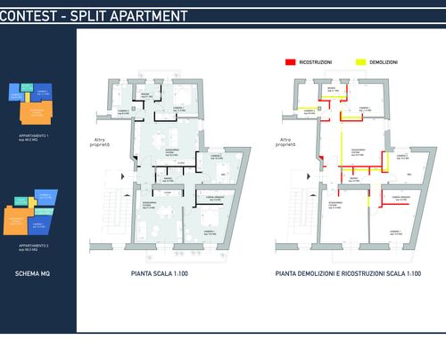 VORREI DIVIDERE L'UNITA ABITATIVA IN DUE SPAZI,IN CIASCUNO DEI DUE APPARTAMENTI HO BISOGNO DI DUE CAMERE DA LETTO CON CABINA ARMADIO CUCINA PICCOLA E ZONA LIVE, DA DESTINARE AD USO VACANZA.