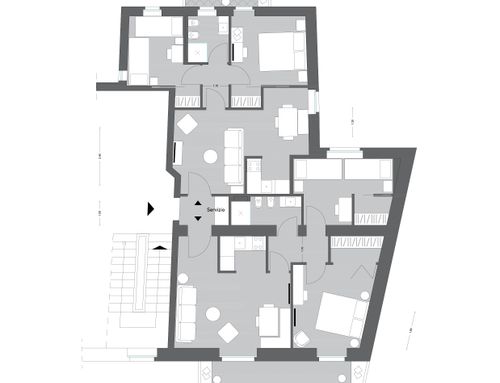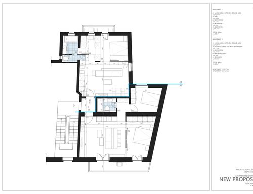 I WOULD LIKE TO DIVIDE THE LIVING UNIT INTO TWO SPACES, IN EACH OF THE TWO APARTMENTS I NEED TWO BEDROOMS WITH WALK-IN CLOSET, A SMALL KITCHEN AND LIVING AREA, TO BE INTENDED FOR HOLIDAY USE.