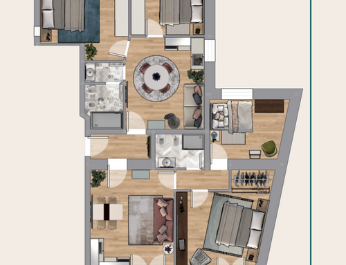 ME GUSTARÍA DIVIDIR LA VIVIENDA EN DOS ESPACIOS, EN CADA UNO DE LOS DOS APARTAMENTOS NECESITO DOS DORMITORIOS CON WALK-IN CLOSET, UNA PEQUEÑA COCINA Y SALA DE ESTAR, PARA USO DE VACACIONES.