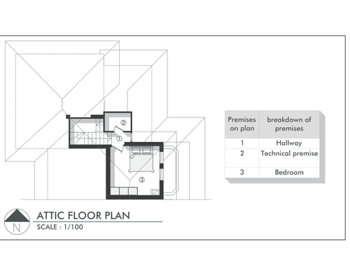 In the attic today there is a bedroom and where the technical compartment is written there is a small bathroom to be restored.