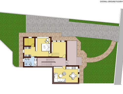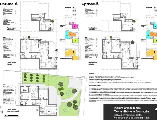 2)	Il piano rialzato ed il sottotetto desidero siano calcolati insieme. Queste due zone sommate devono sviluppare due appartamenti con entrate distinte. Per quanto concerne gli accessi, preferirei non dover costruire una scala esterna per accedere ad uno dei due appartamenti ma sfruttare le scale interne che magari possono essere condivise tra il piano terra/semiterrato ed uno dei due appartamenti del piano rialzato e sottotetto.