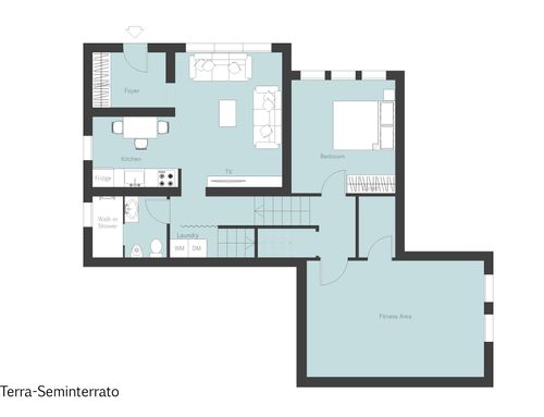 Il mio appartamento deve prevedere una camera da letto matrimoniale, una cucina, un bagno, soggiorno e anche un’area dove posso allenarmi (pratico kick boxe).