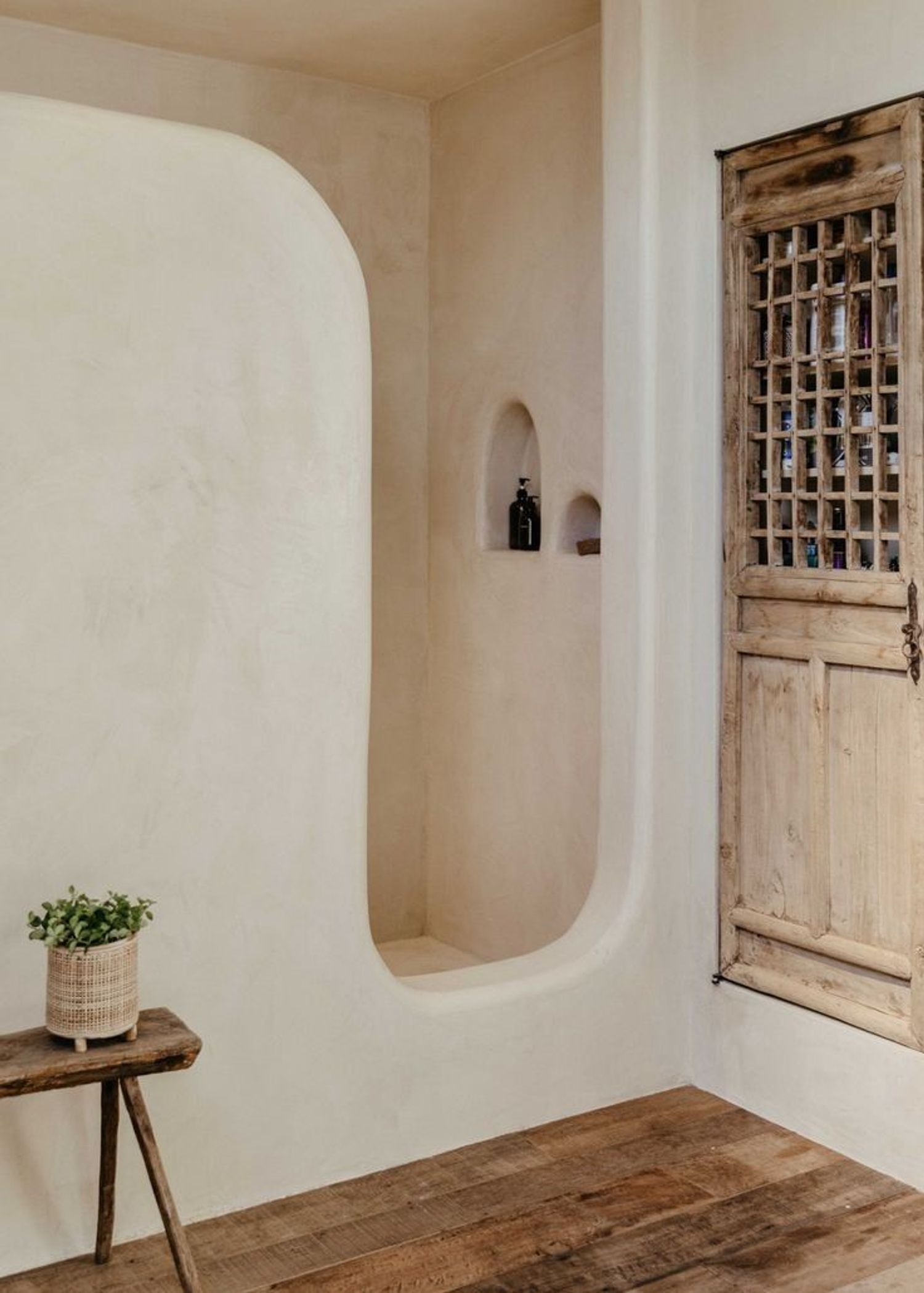 El baño está previsto dentro de la habitación ciega situada a la derecha de la entrada y debe incluir también un antebaño con zona de lavandería para garantizar funcionalidad y orden.