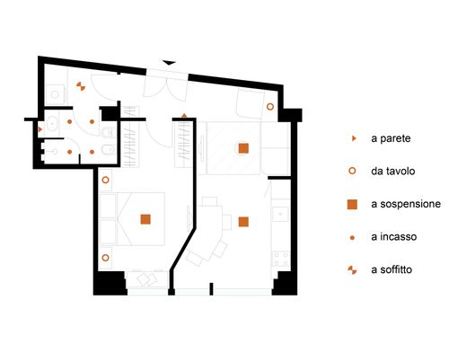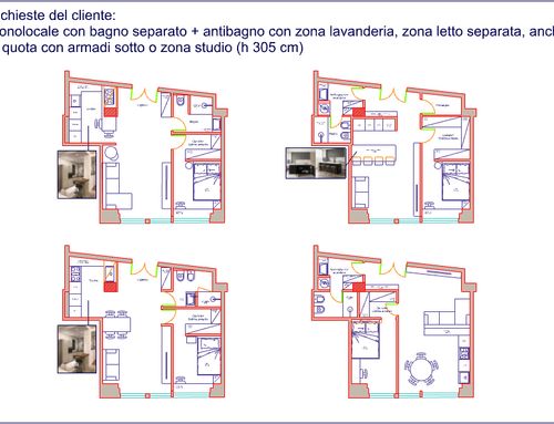 - Soluzioni di arredo creative e funzionali (es. pareti mobili, elementi trasparenti, scaffalature divisorie, ecc