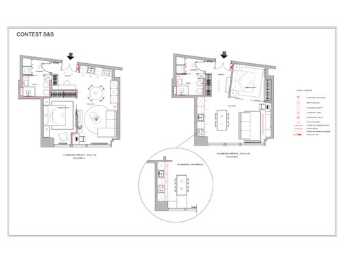 Il contest ha come obiettivo la ristrutturazione di un monolocale con bagno separato, dove la cucina dovrà essere open space e la zona letto dovrà essere ricavata in modo intelligente, senza risultare invasiva rispetto al soggiorno.