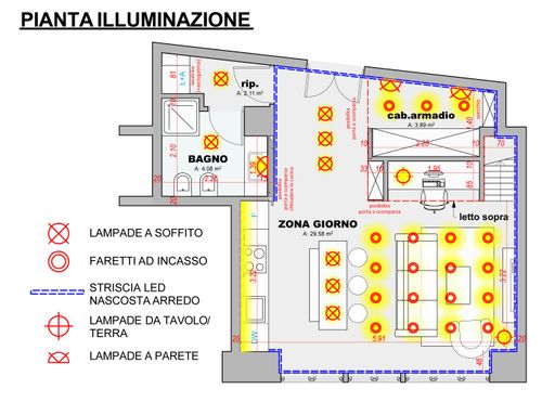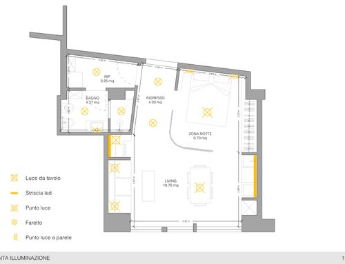 - Posizionamento strategico della zona letto per massimizzare luce e spazi.