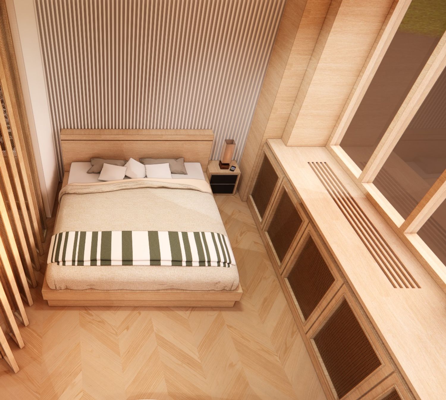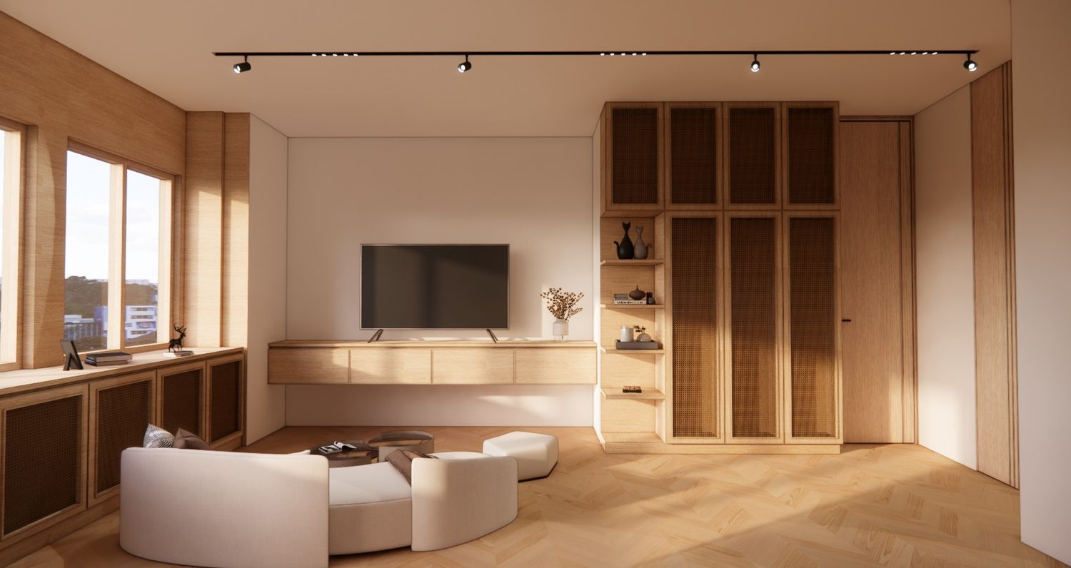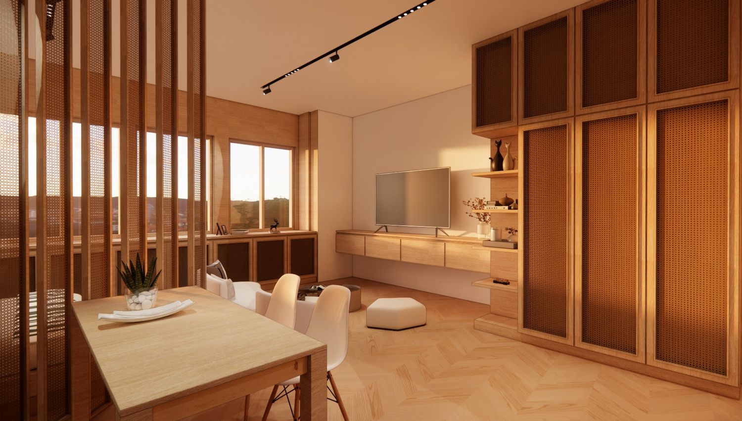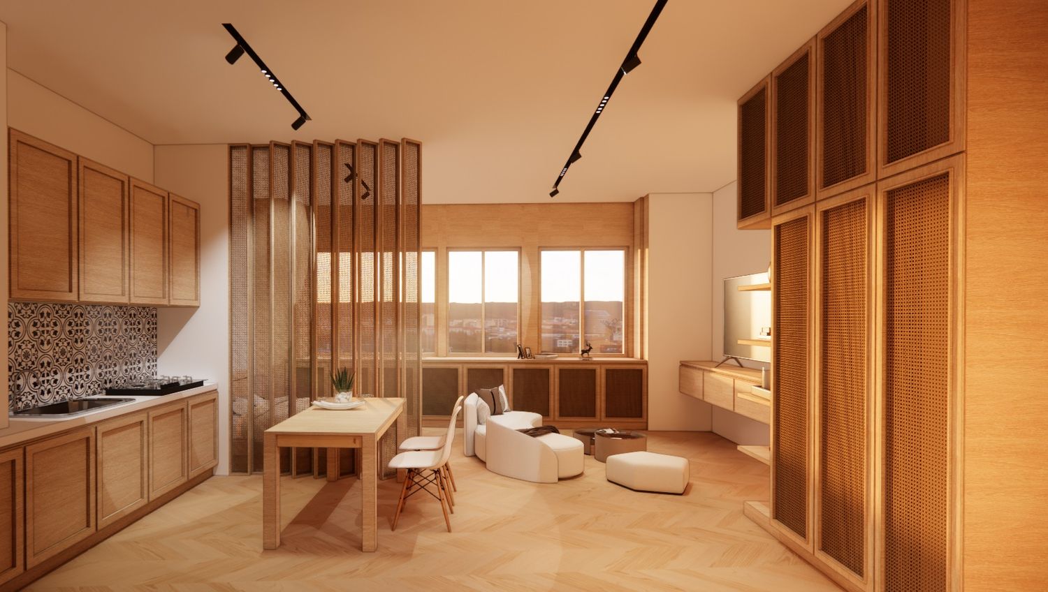 This project transforms a compact studio apartment into a modern, multifunctional living space designed for comfort and efficiency. The layout embraces an open-plan concept, integrating the kitchen, dining, sleeping, and living areas, while maintaining clear spatial organization.