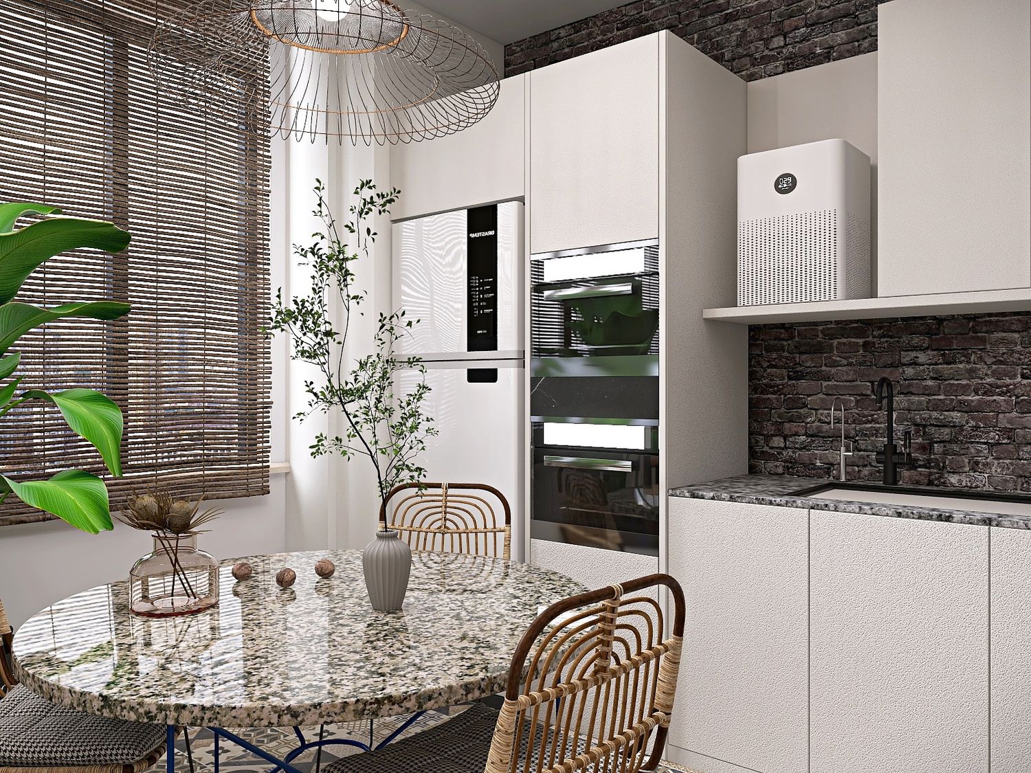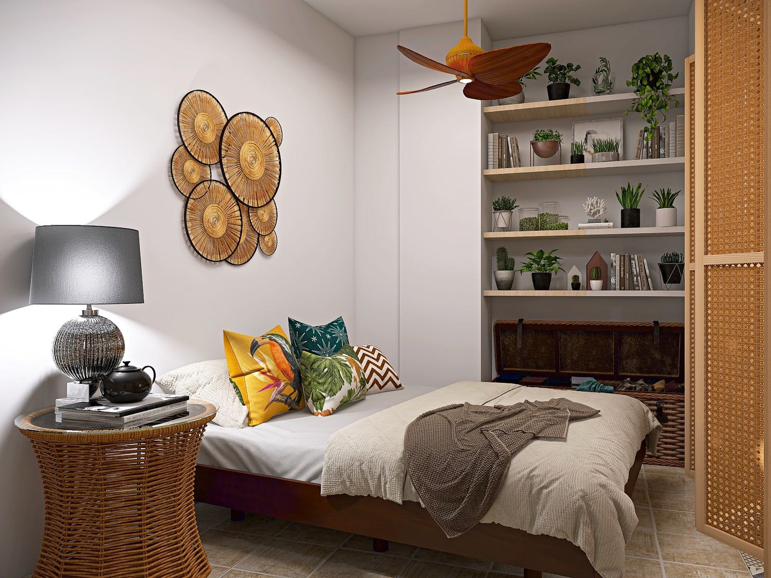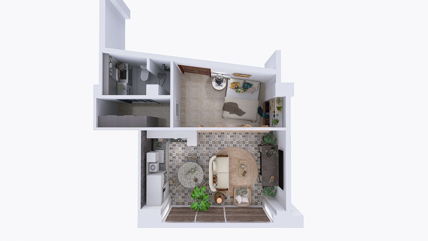 Hi client, this is a very challenging studio space to design, considering you want an open space with few windows. The concept is to create transparent folding doors made of rattan or woven bamboo so they can be opened and closed as desired. The only closed areas are the bathroom and walk-in closet with a door. This design incorporates a maximalist concept. I hope you enjoy it. Thank you.