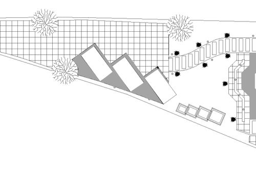 The ground as a seedling is triangular in shape, has an entrance driveway about 2.5 meters wide. a bit uphill, to look out on this large plot at the beginning about 5 meters, but you could recover qualkosa still on the left side, for a length of about 60 meters, the final width is about 25 meters. Entering on the left side we have a bounding escarpment above which I would like to put a hedge and below I would like to finish with facing stones or bricks; while on the DX side we have another slope that descends on a municipal road, high up to about 10 meters and about 70 meters in length that I have covered with grilled concrete bricks to contain the steep ground, and I would like to point out this on how to fence and how to avoid continuous maintenance for the growth of weeds. Then, as in the picture I would like to finish the entrance part, with a floor and laterally before and after the gate, with bricks or stones, and side locks to prevent lateral infiltration. In the flat part and therefore actually usable, I would like a parking area for at least 3 cars, then an area with flowerbeds and small plants, and a beautiful ancient olive tree, the pedestrian paths leading to the building, which should be placed in the large part of the land, with an exposure mainly to the west, single-storey and with a large and wide canopy around.