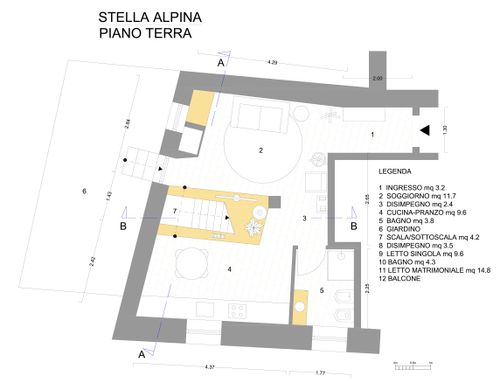 Another info: the apartment has 2 accesses in ground zero: 1 from the building and 1 in front from a small garden (9 Mq). the overall Height is 2,20 m.