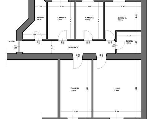 I accept a different distribution of the rooms, included the kitchen; in this case, pay attention at the central heating, because it cannot stay in a room where people sleep. The central heating will be replaced: it will be a wall-mounted model, indicatively the size will be: 1000x600x500 mm (highxlargexdepth); it cannot be positioned in another place because of technical limits (position of the chimney, ecc).