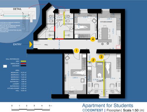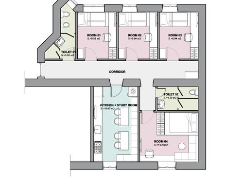 Deve essere creato un nuovo bagno, utilizzabile da tutti gli inquilini (non deve essere un bagno dedicato ad una sola stanza).