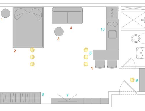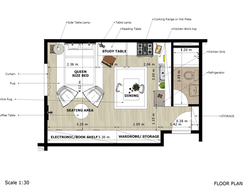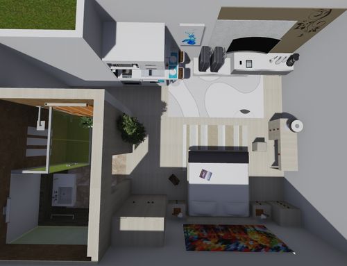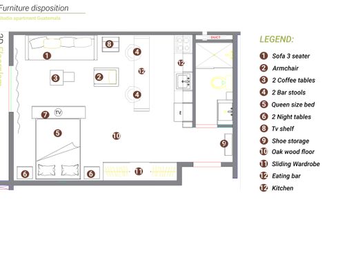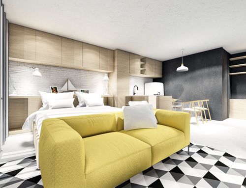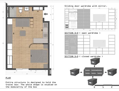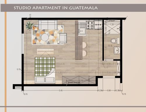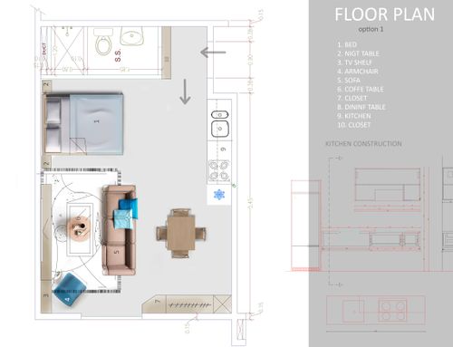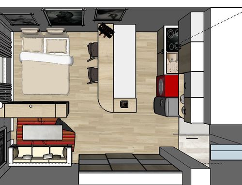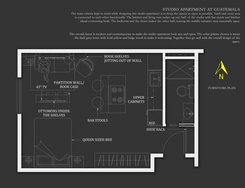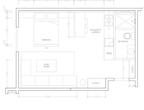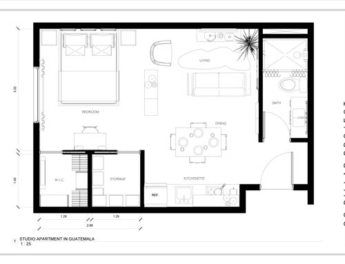 I want a studio option (open space) for a small city apartment. The studio is intented for two. We do not do a lot of cooking and only eat dinner in the apartment. We do not need that much of a closet since Guatemala has great weather year round but do need some space for outdoor equipment.