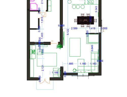- the partition marked with “X” will be eliminated, while the door marked with a red circle can be considered to keep it or move it