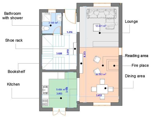 - In the entrance area and staircase corridor create a solution where you can store jackets and shoes and also a welcome reading corner where possible