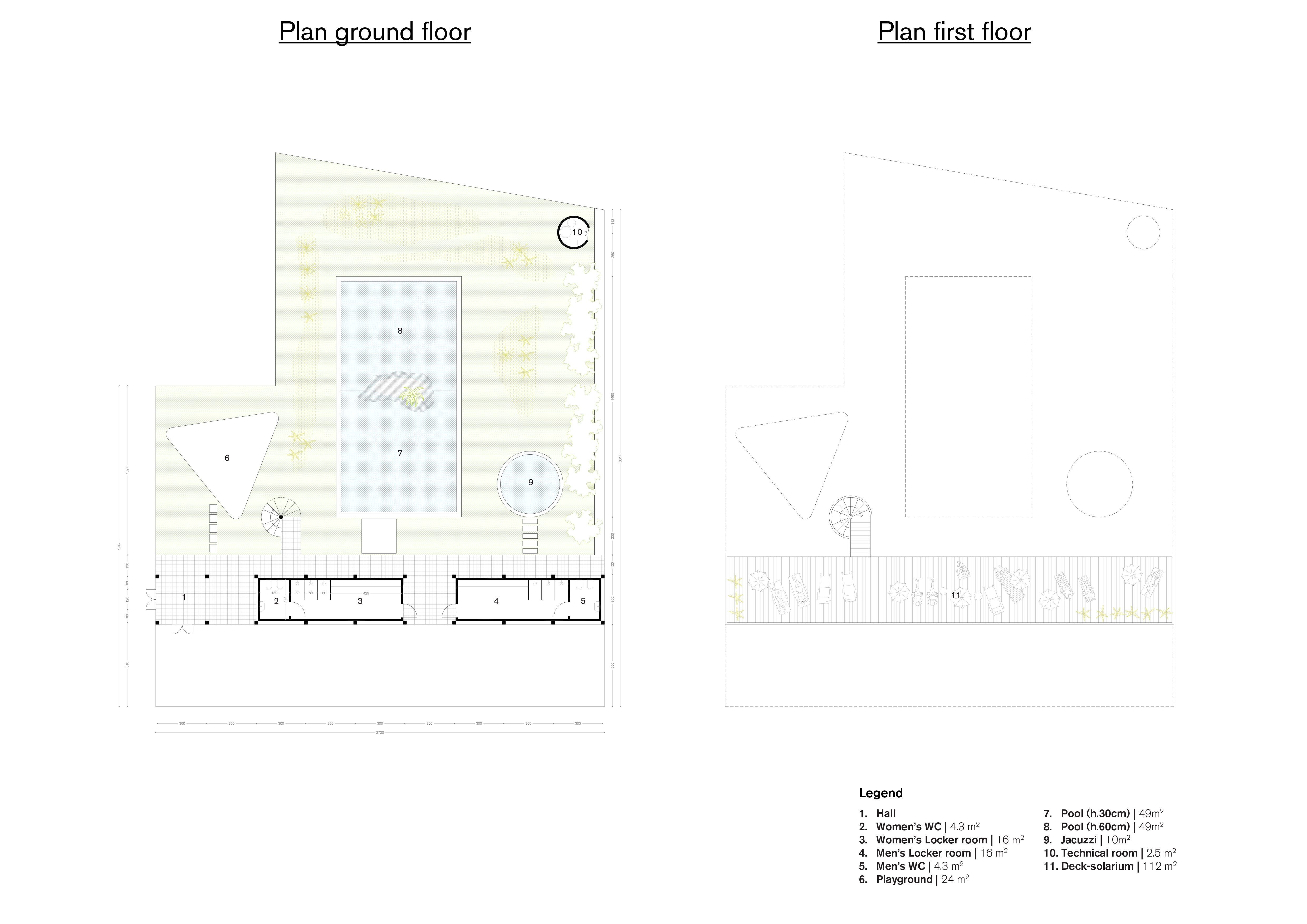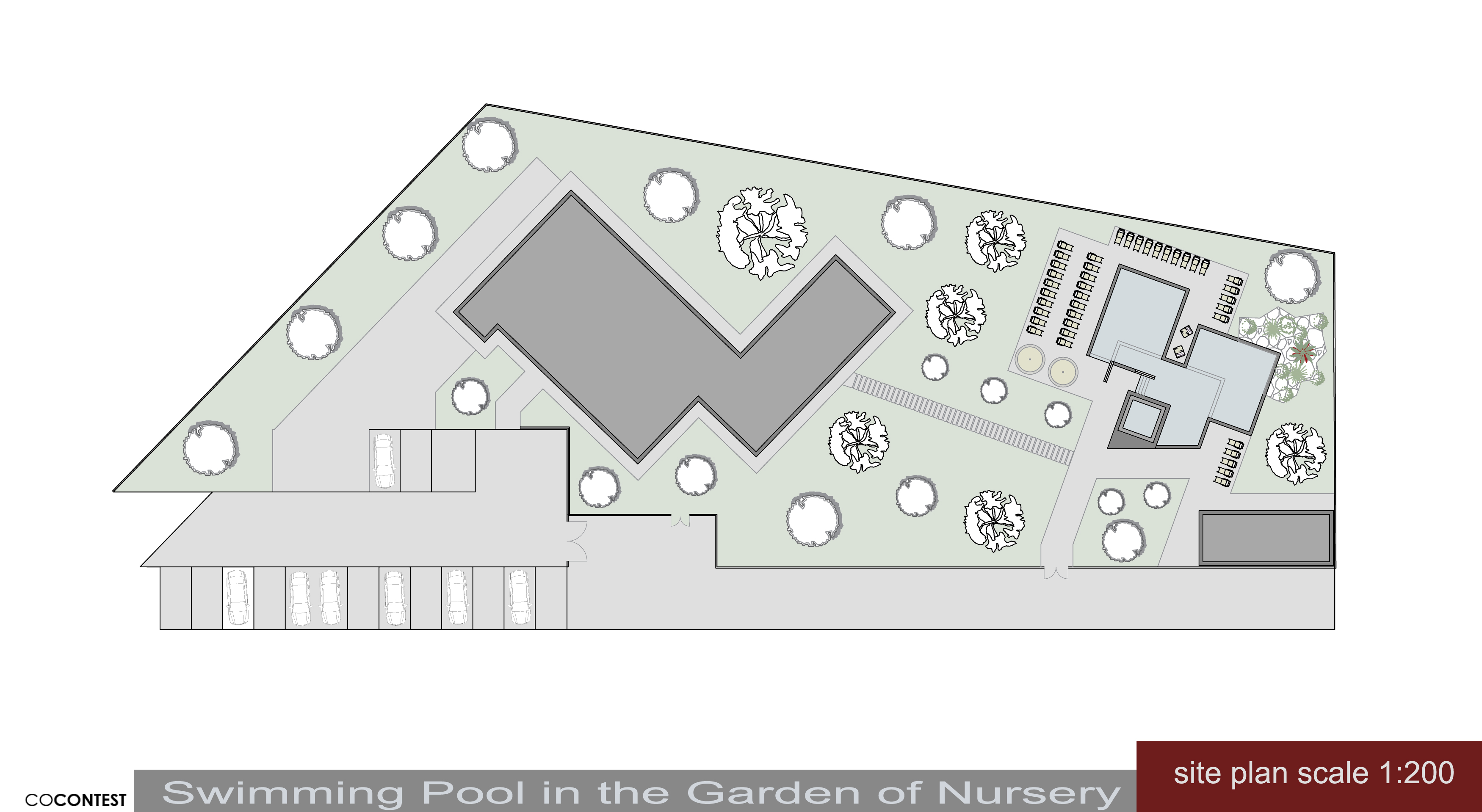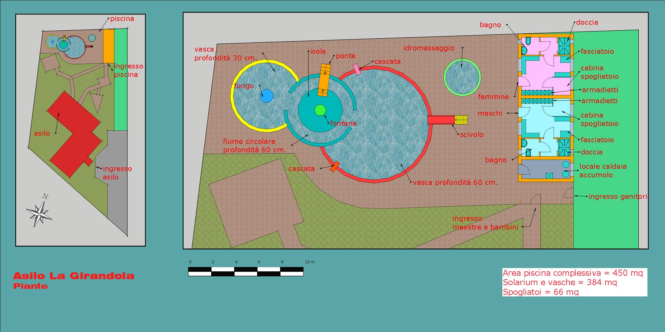 Build a swimming pool in the garden of a nursery, a regular form of 100 square meters, divided into three zones water depth: 60 cm, 30 cm and an area (max 5 people) with Jacuzzi for parents