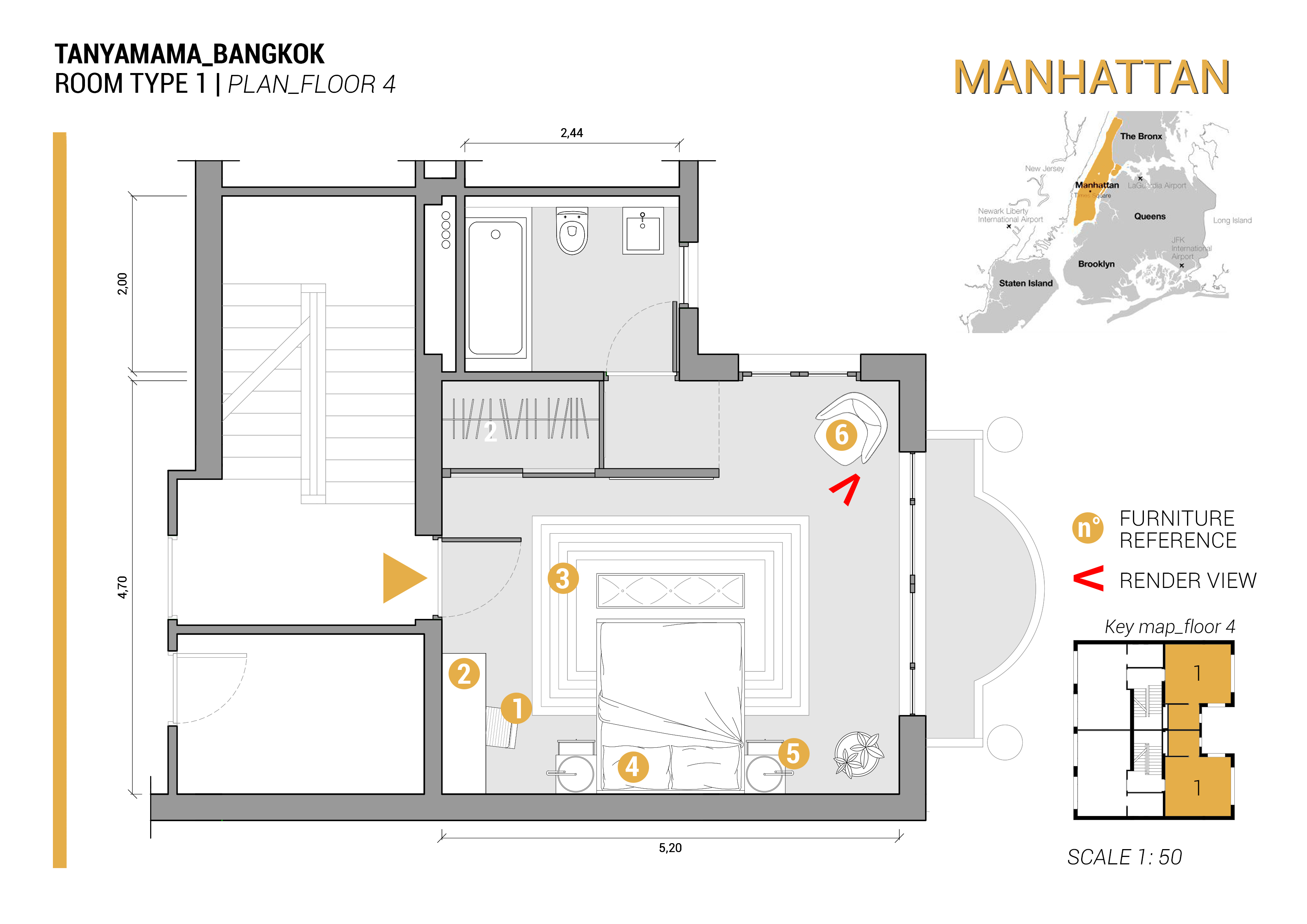 I would like to convert a building of total 520sqm in a boutique hotel with 8 rooms with bath, a lobby and a cafeteria. ( the cafeteria project is already designed and I will upload the picture in the next days). According the cafeteria I would like to maintain the same style in all the structure. I got inspiration and I really love to create a sort of New Yorker loft with a touch of retro classy furniture. In fact we have a huge wall in break in the first floor. The space have to be functional, stylish and minimal. Our goal is to create a very cool hotel in Bangkok.
