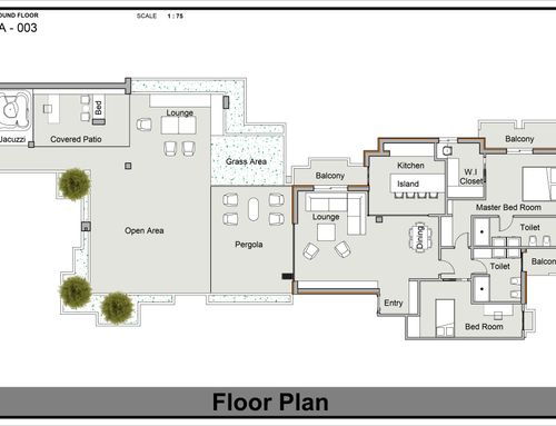 Sul perimetro del terrazzo piante o siepi in grado di creare privacy. In particolare, gradirei creare una zona con arbusti e piante con tronco leggero o qualcosa di simile per creare un piccolo angolo giardino. Tutta la pavimentazione del terrazzo dovrà essere galleggiante. Vorrei avere una parte del terrazzo con pavimentazione in erba sintetica di elevata qualità. Il portico sarà utilizzato come ufficio/piccola palestra ed all'occorrenza come stanza da letto (letto a parete).