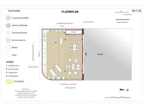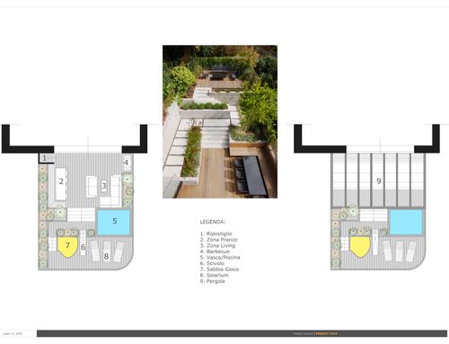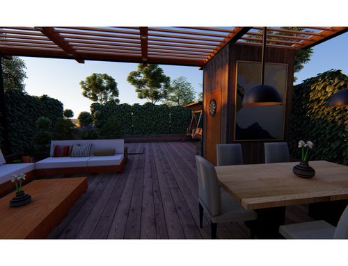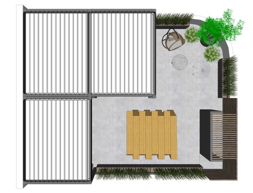 We need to replace the flooring on our terrace. Since the intervention is invasive, we have decided to change the style of our outdoor space. The design must be contemporary, fresh, with a strong visual impact. We do not know whether to prefer a floating coating or a micro-cement pour. We certainly want it to be exceptionally long-lasting and we want to cover half of the square footage with a pergola that must be self-supporting for the legislation of our municipality. Today a series of vases with jasmine guarantee us privacy and the view of the greenery we care about. Jasmines have proved to be the right choice because they are rustic enough to resist in a pot on a terrace facing south, but they lose many leaves that clog the spillways, so the choice of how to distribute the greenery will be strategic. We also need small corner to store the broom and some small tools. The terrace measures 8 * 10 square meters, although we do not have houses close to our space, privacy is important and how to delimit the perimeter will be a fundamental choice. We are looking for contemporary solutions, we want an element to be included in the architecture that entertains children and at the same time with a strong design impact such as a swing or a slide, a refuge, a bathtub, or a sandbox. The pergola will have to cover half of the area to allow us to stay outdoors even in case of light rain. We would like to keep the furniture but it is not essential. Particular attention should be given to the choice of materials and lighting which will create an evocative atmosphere in the evening. The budget is a fundamental point of the project: we have not yet defined our spending ceiling but we will also evaluate this element.