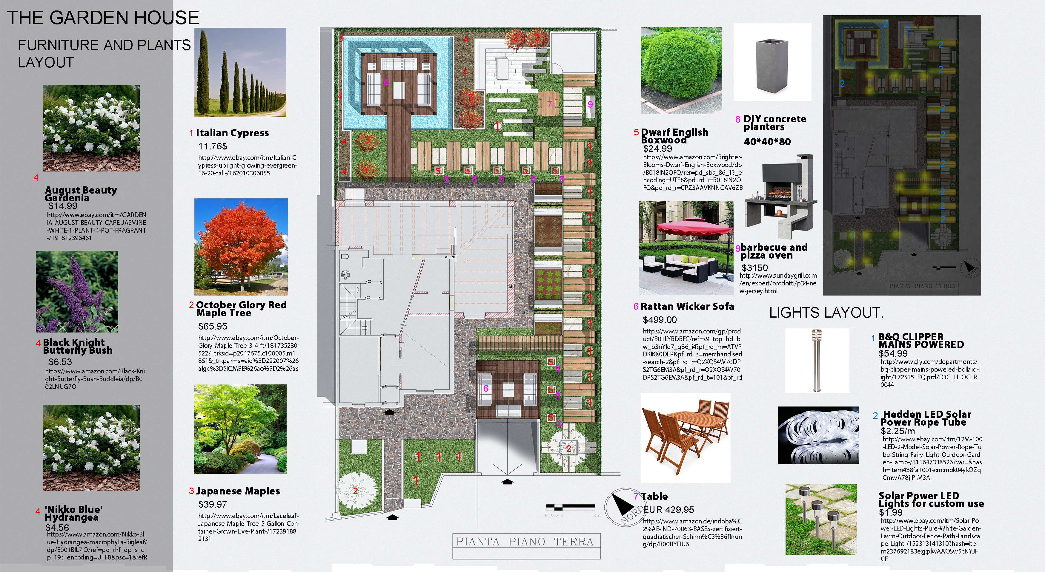 Vi chiediamo anche lo studio dell'illuminazione eventuale e indicazioni sull'eventuale impianto di irrigazione.