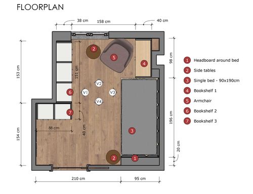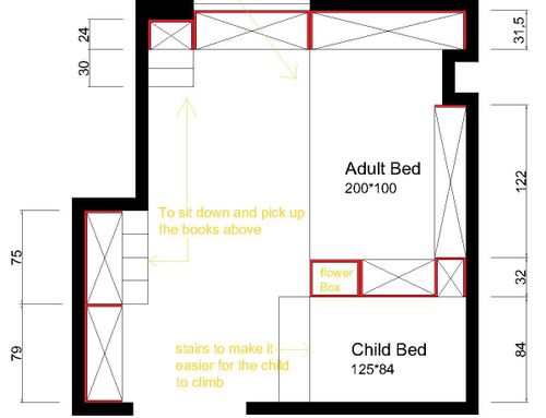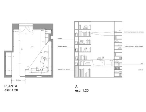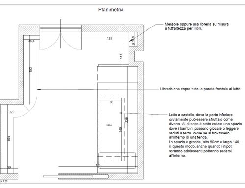 Vivo en una casa donde queda una habitación totalmente vacía que me gustaría usar como biblioteca y al mismo tiempo tener una cama adentro como sumergida en libros pero de una manera original. En particular, lo veo lleno de los colores de las cubiertas de los libros que también dan la vuelta a la ventana. y también me gustaría que se convierta en un lugar especial para mi nieta que ahora tiene 8 años y tuvo la idea de hacer una biblioteca