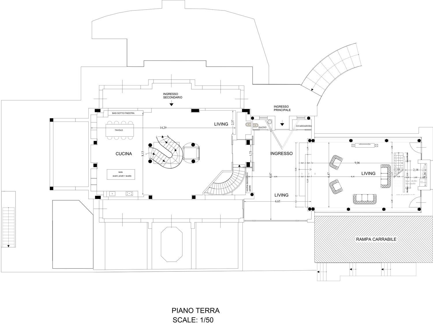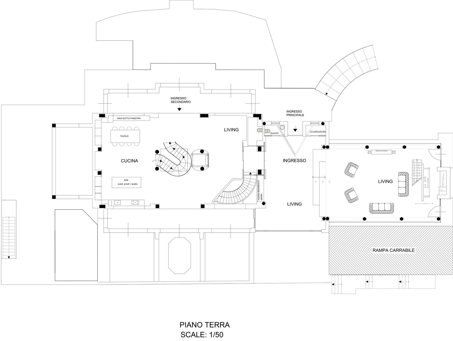 - La disposizione delle scale genera un ritmo scultoreo e, con la luce, diventa un invito verso l’alto.