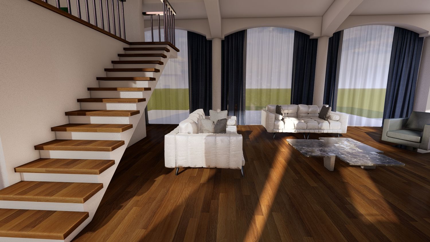 - Le luci sotto i gradini evidenziano il dislivello e aggiungono profondità scenografica.