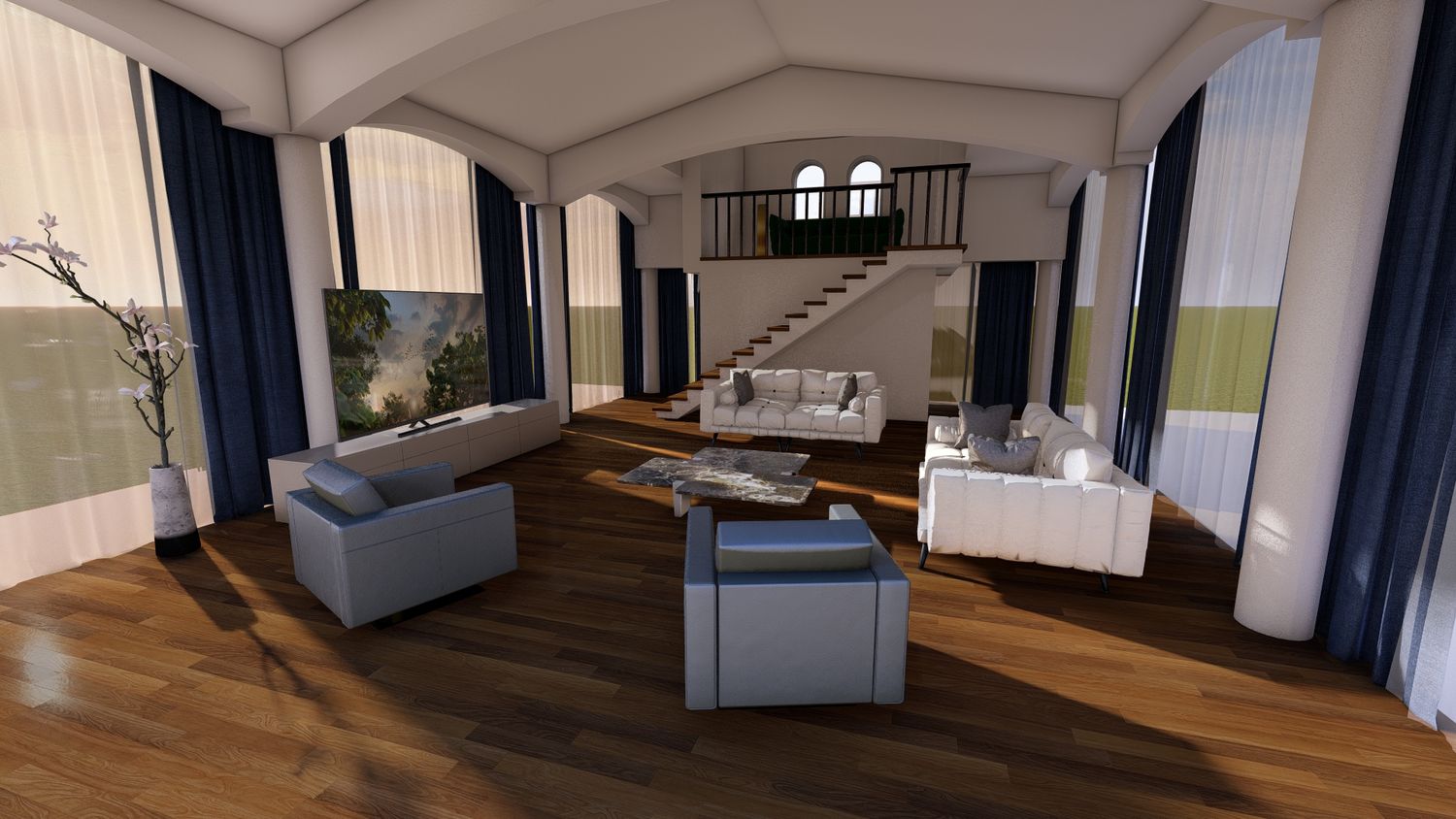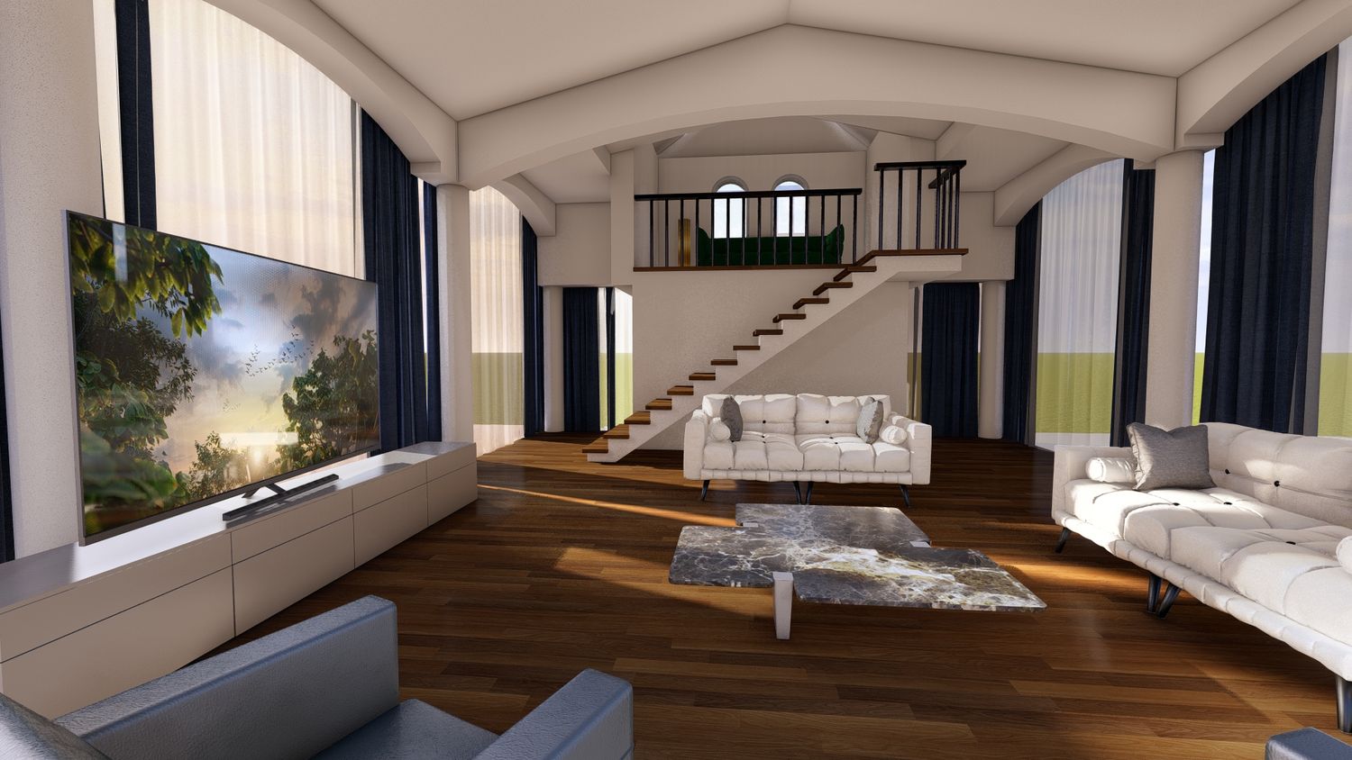 - Le nicchie decorative e l’angolo bevande integrato rendono lo spazio elegante e conviviale.