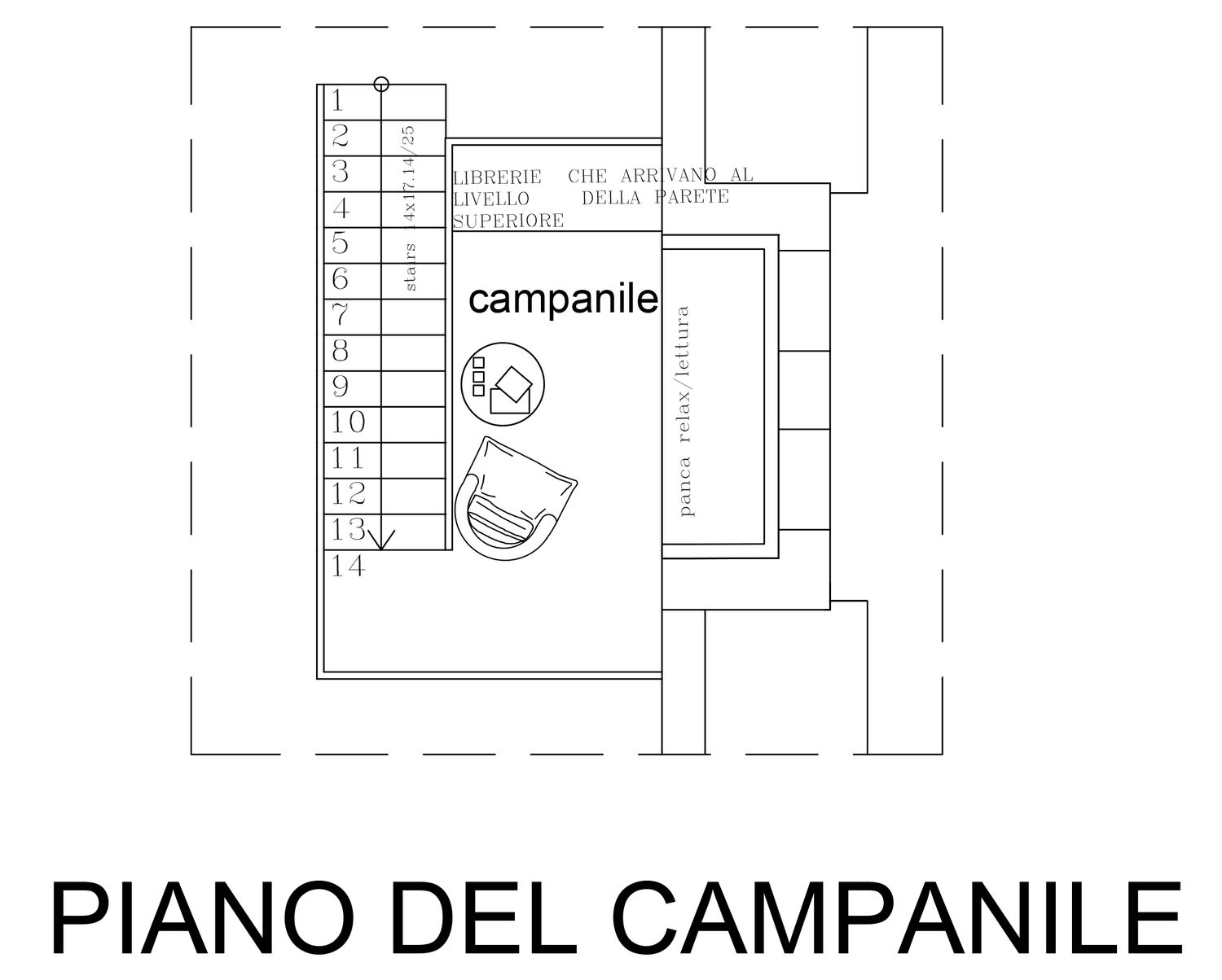 Le aggiunte trasformano il campanile in uno spazio scenografico e accogliente.