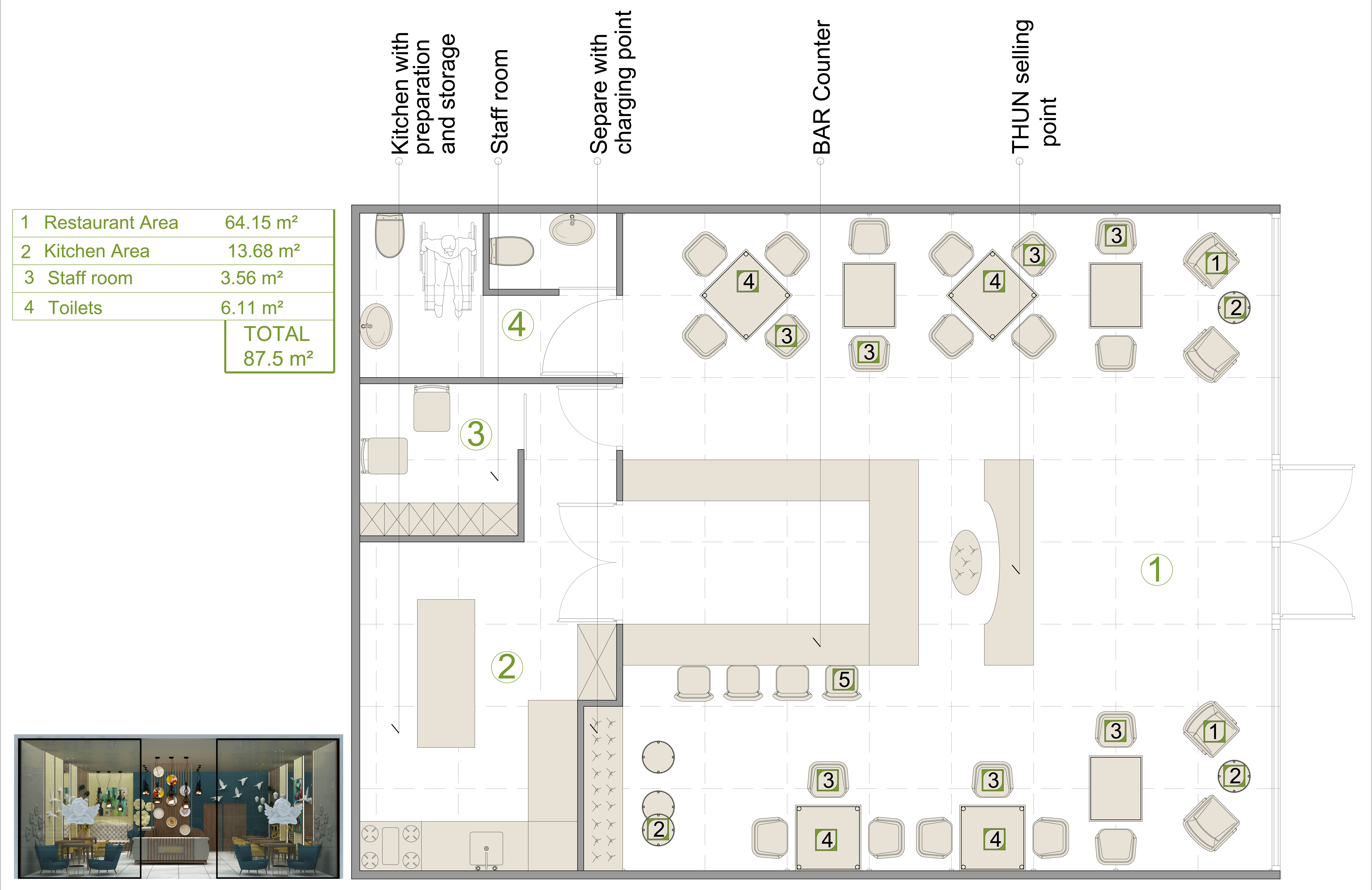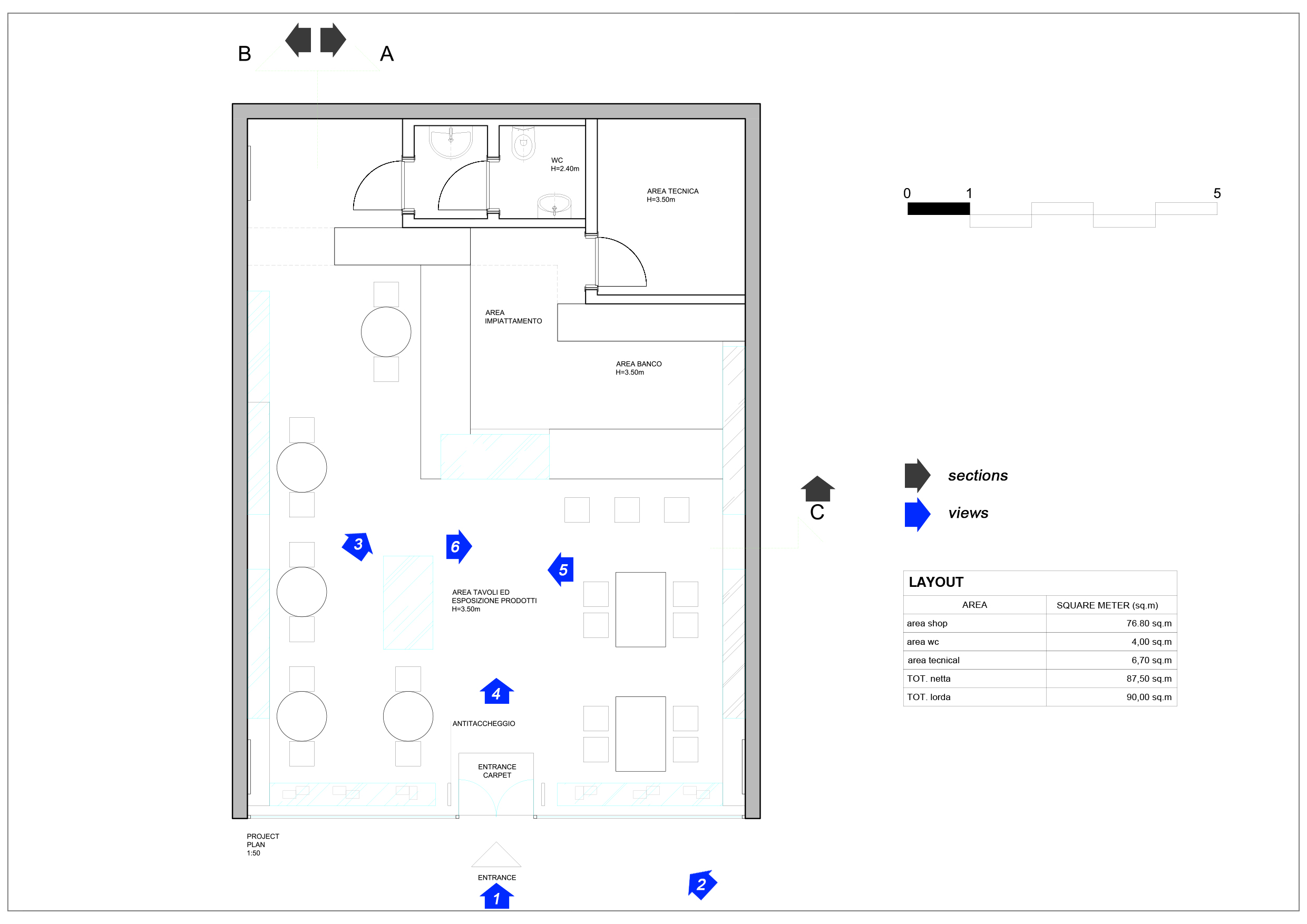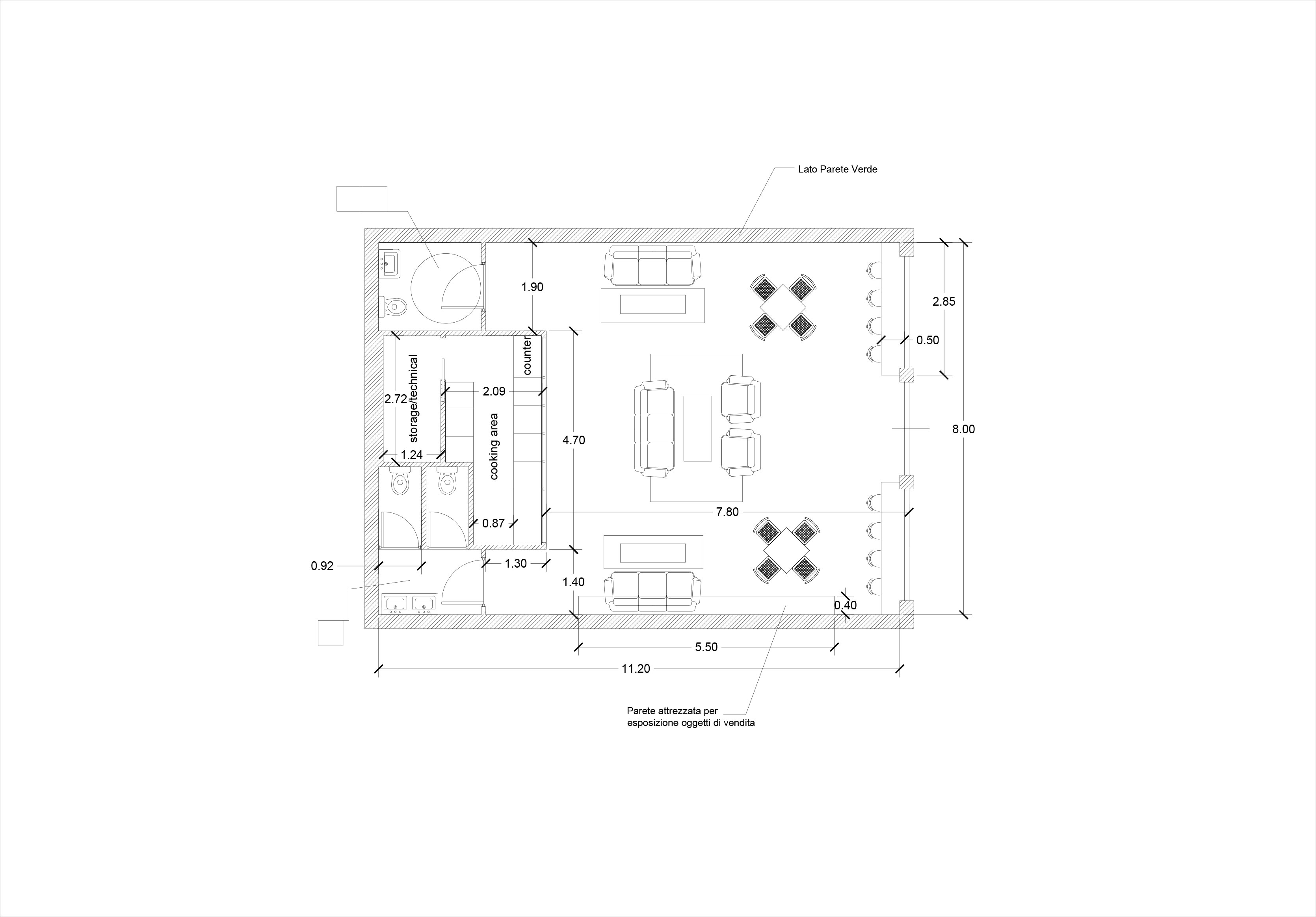 50 – 100 mq (dipende dalla location). Da definire dimensione in base al miglior concept che si crede applicabile a questo progetto.