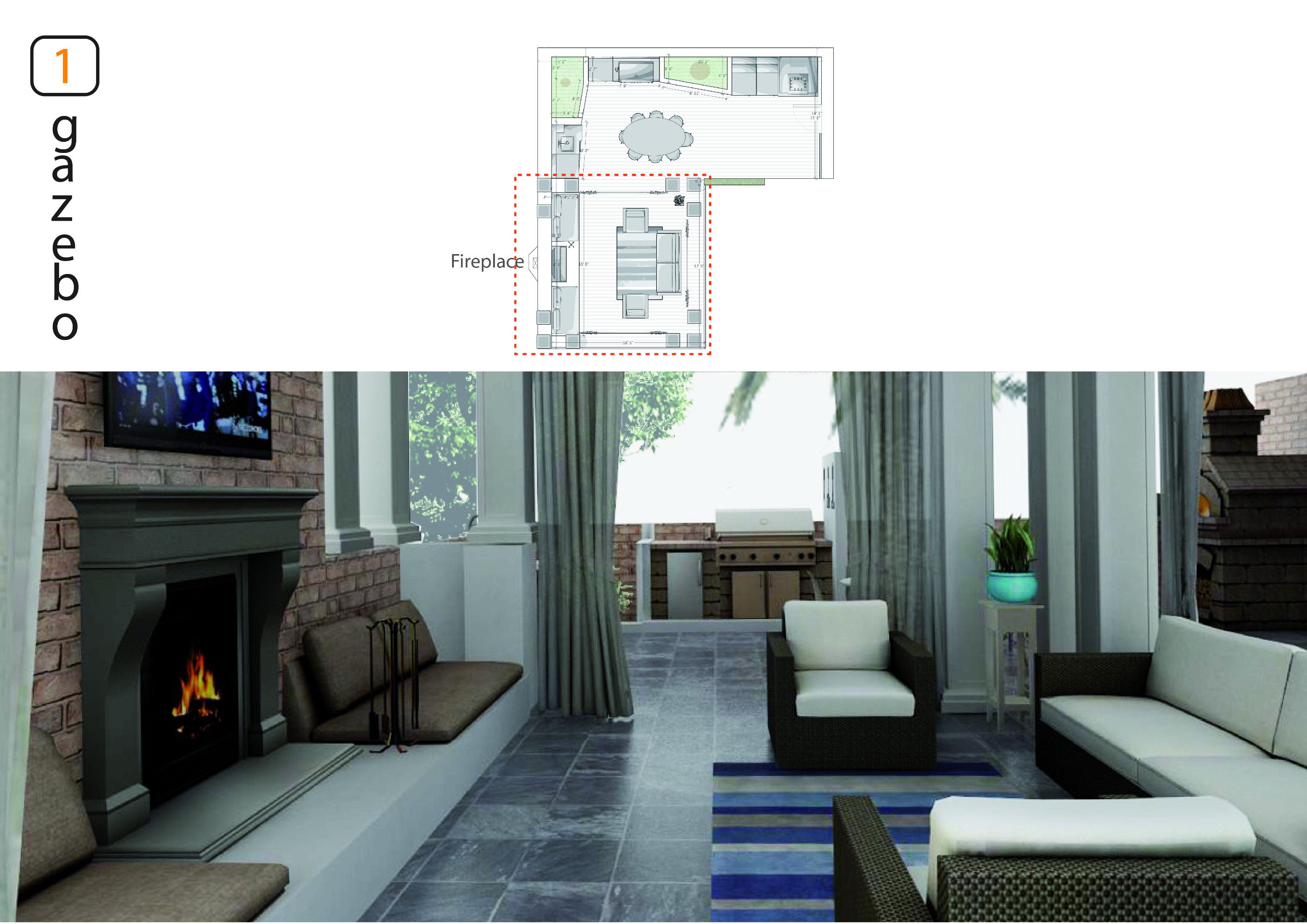 Looking for a design that is an efficient use of space, is livable, and matches the theme of the gazebo. The gazebo is the center of fall/spring entertaining and I want a natural extension of the gazebo into the 'courtyard'.