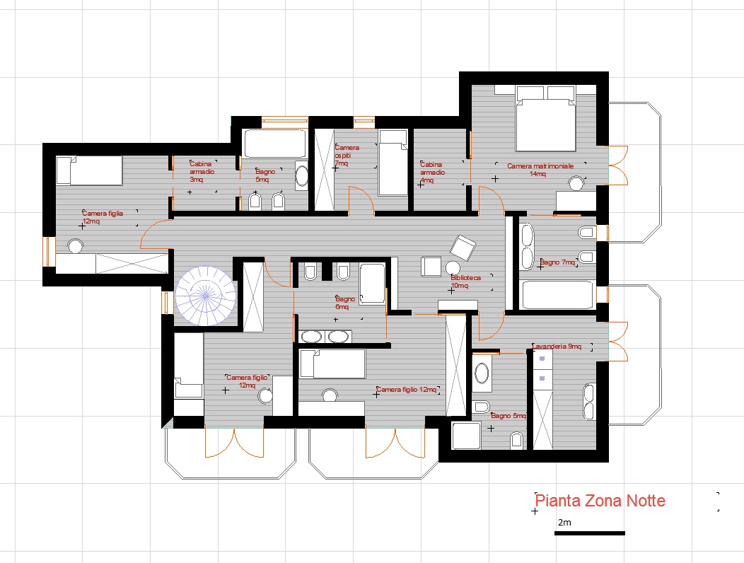 In tutto 4 bagni nella zona notte