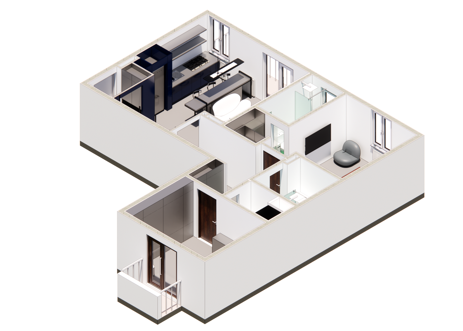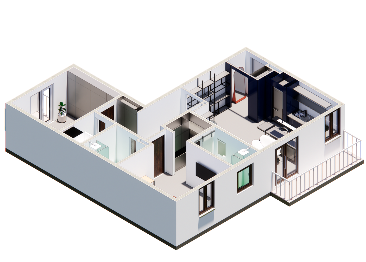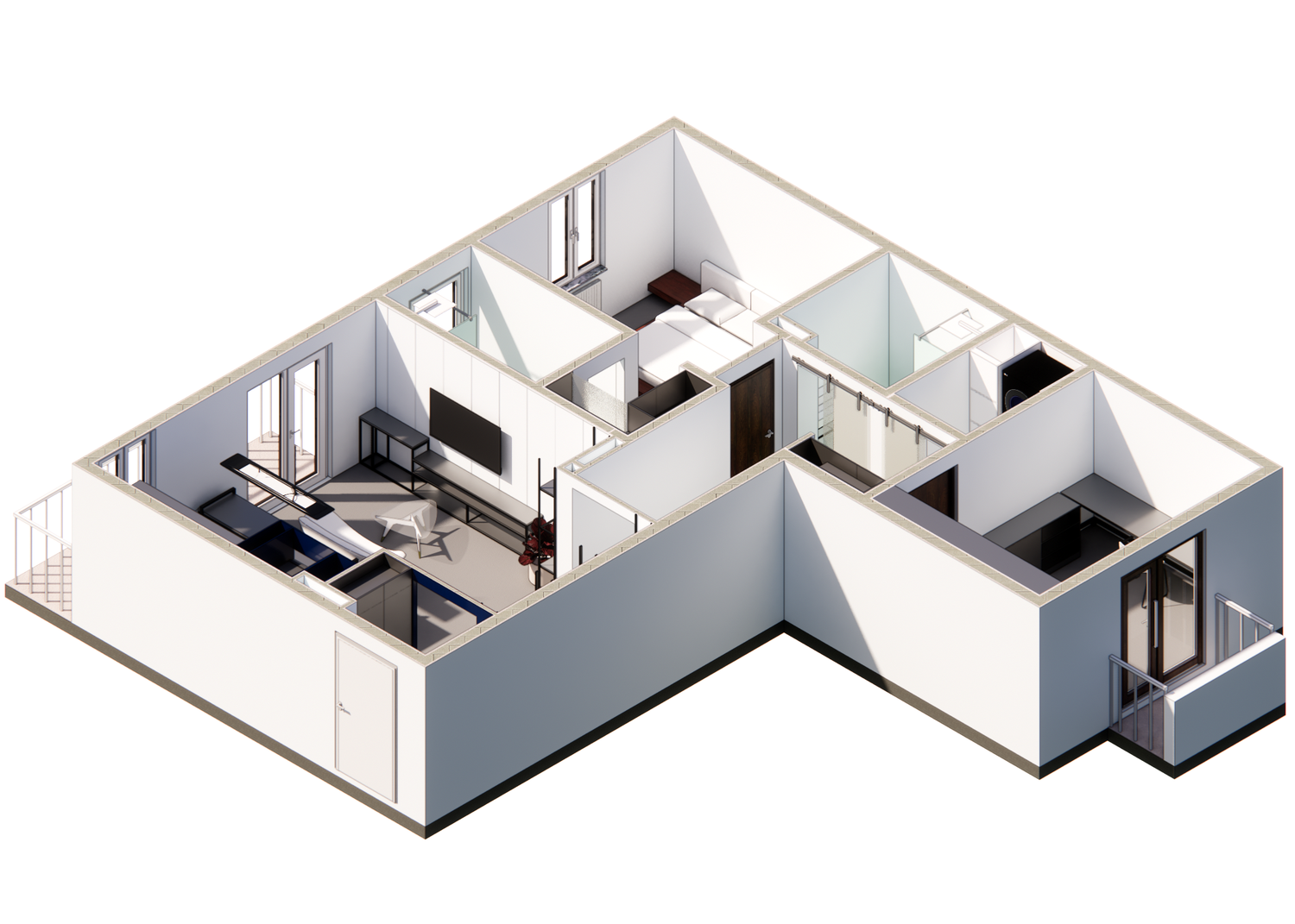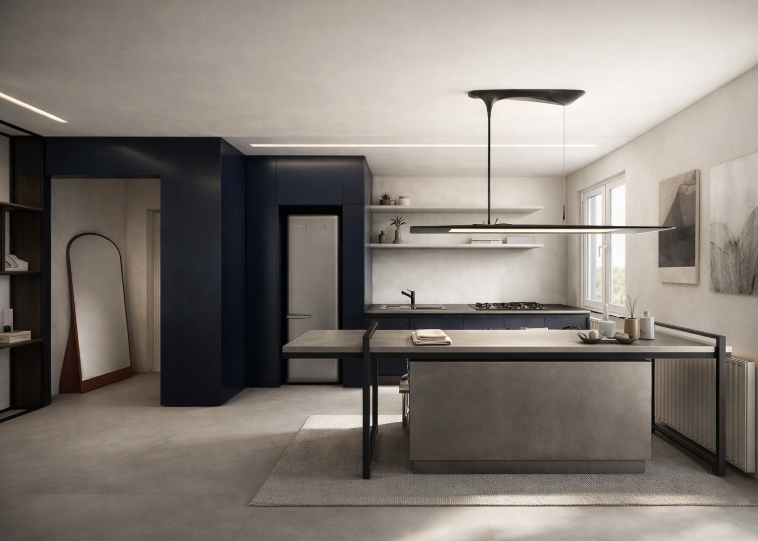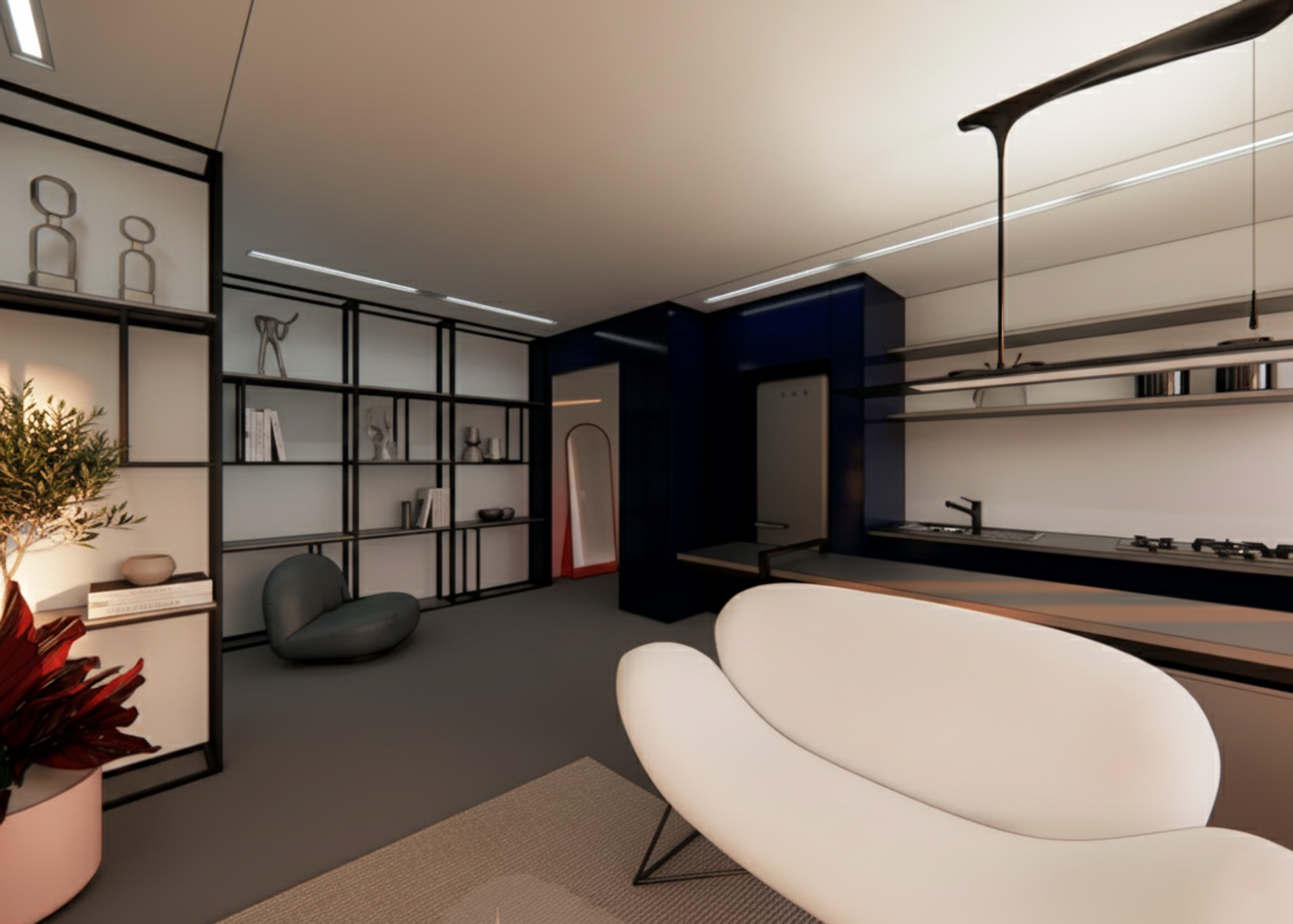 Portable and mobile furniture elements enhance visual lightness and support adaptive configurations, enabling residents to reprogram the space according to daily needs.