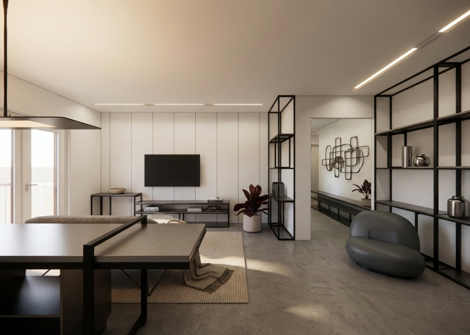 This apartment renovation redefines contemporary domesticity, responding to the fluid and evolving patterns of urban living. The design adopts a light industrial aesthetic in the public areas, promoting spatial flexibility and multi-functionality. By removing inefficient partitions, the plan opens up to allow breathing room and seamless transitions between living, dining, and gathering zones.