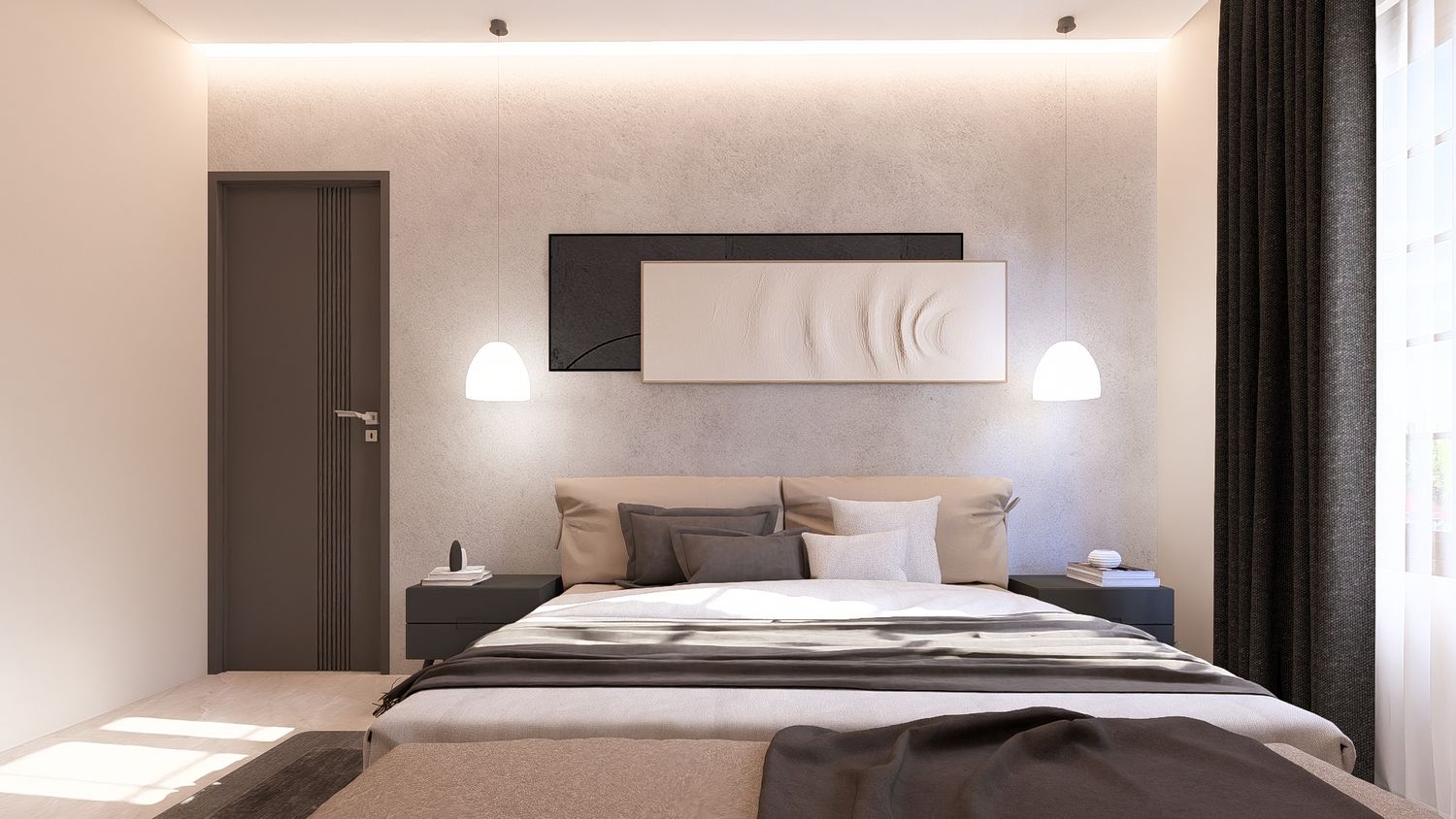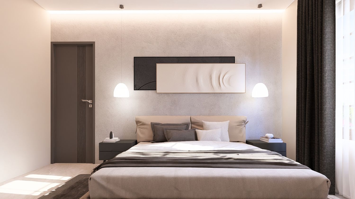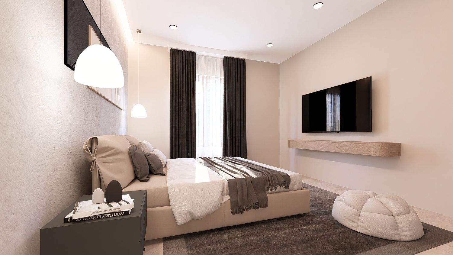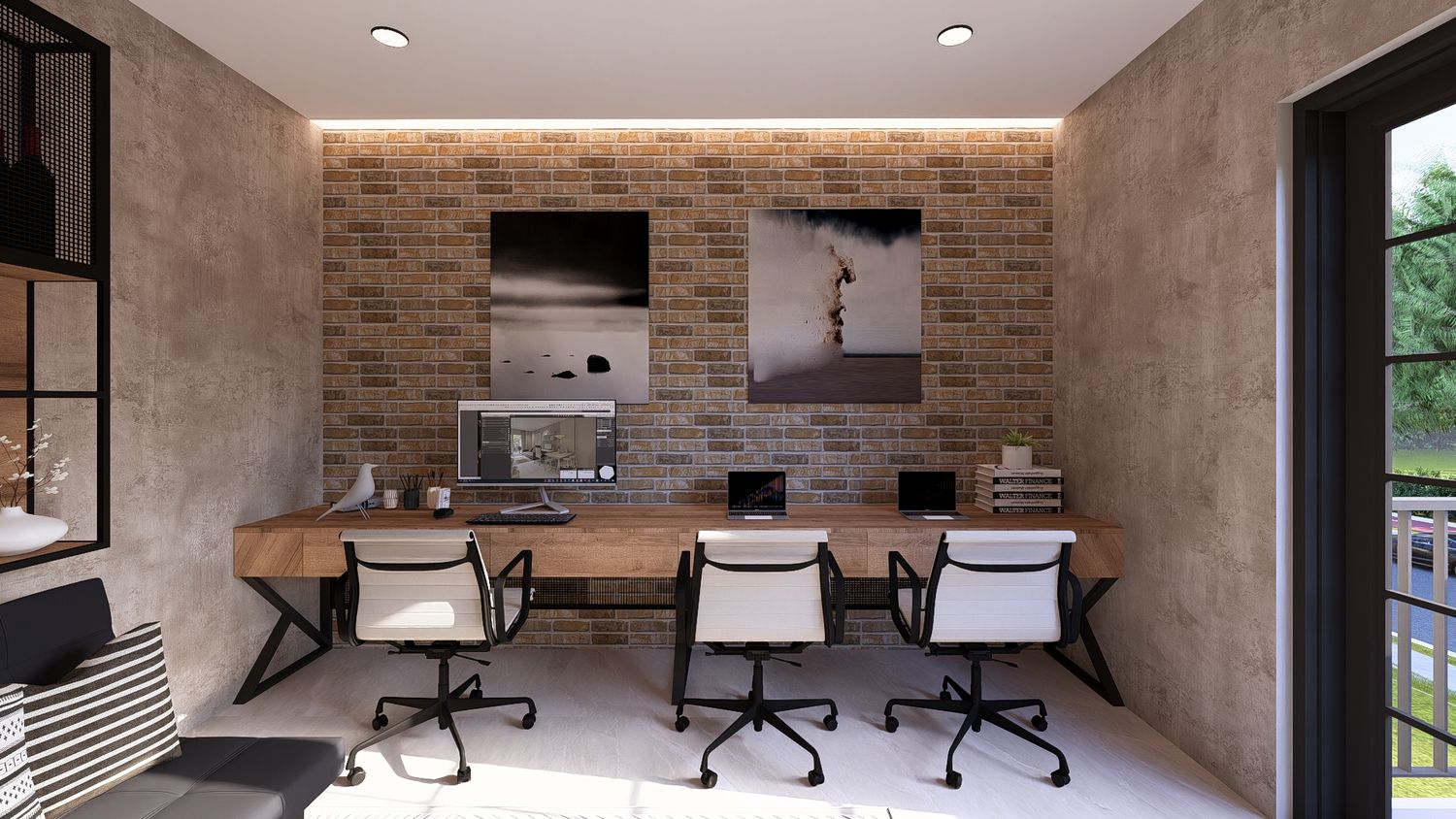 Questa soluzione privilegia comfort e separazione degli ambienti, con uno studio indipendente che può essere utilizzato come stanza multifunzionale (lavoro, ospiti o relax).